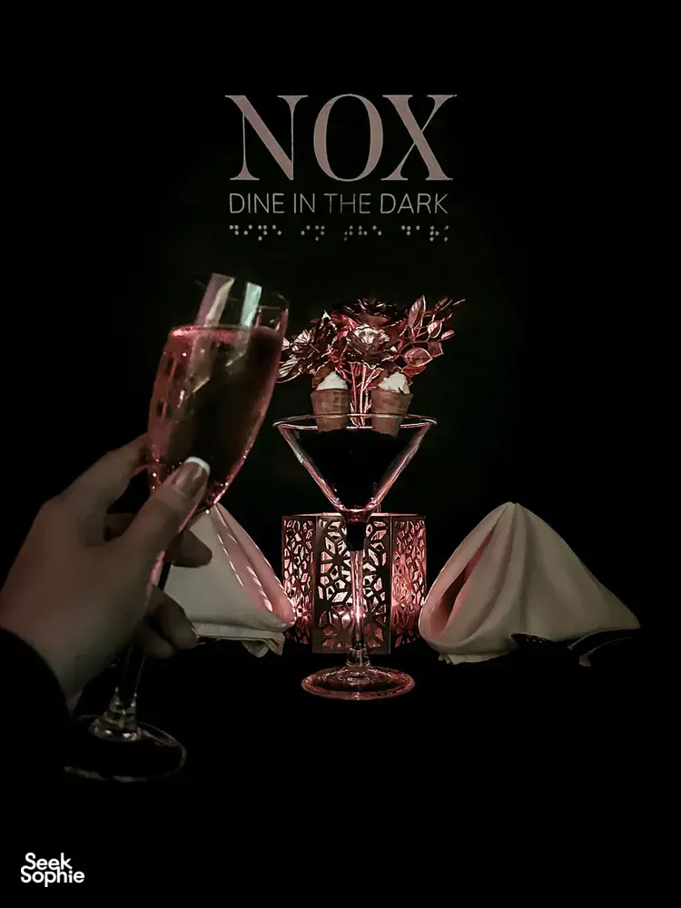 What happens when you remove your phone, the distractions of the room, and even your sense of sight?Dining in complete darkness becomes an invitation to slow down and reconnect - with the people you came with, and with the conversations that often get lost in everyday life. Without visual cues, you listen more closely, notice more deeply, and often uncover new sides of each other in ways you didn’t expect.Step into a different kind of dining - one led by blind or visually impaired hosts who serve 12 beautifully crafted, mystery dishes in complete darkness. Think delicate Pan-Seared Norwegian Scallops with Tarragon Butter or Pan Seared Duck Leg with Charred Marmalade. Without sight, your palate becomes your guide, turning every bite into a surprisingly vivid sensory discovery. Along the way, your host will share personal stories and perspectives from navigating a world designed for sighted people. Guests are encouraged to engage, ask questions, and learn - turning the dinner into a genuine human exchange, not just a meal.Why This Experience Matters:By dining here you not only engage your senses, but also support meaningful employment, empowerment and inclusion for the visually impaired community in Singapore. This socially-driven experience offers a glimpse into life without sight, encouraging understanding and strengthening our collective commitment to a more inclusive society.What to ExpectStart the night in the softly-lit lounge and a quick rundown of what to expectTry an amuse-bouche to tease your palate before diving fully into darknessBe guided upstairs and have a dedicated, intimate conversation with your visually impaired host as they share their perspectives & lived experiences - a meaningful component created exclusively for Seek Sophie guestsSavour 12 mystery dishes (4 starters, 4 mains, 4 desserts) in total darknessAfter dinner, return to the lounge to guess what you ate and see the full menu revealed with photosGood to KnowBeverages like wine, cocktails and mocktails aren’t included but can be purchased separatelyThe staff will take note of dietary restrictions - make sure to share these when you book