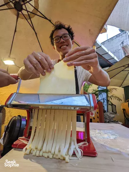 An update from your host: Please take note that in the month of December 2025, we will be shifting many of our workshops from Siglap to our new location at Old Bukit Timah Fire Station. And by February 2026, we will permanently shift almost all our workshops there. Address is 260 Upper Bukit Timah Rd, Singapore 588190.This is a private pasta-making workshop. Always wanted to make your own pasta but are not sure where to begin? Join us at this new food experience —Pasta making, which promises as much fun as The Unexpected's much-loved Pizza Making Experience!We start with two humble ingredients: eggs and flour. Guided by our food-passionate hosts, you'll learn to identify the right pasta dough texture and roll it through the pasta machine, to transform it into gorgeous hand-made pasta. Think classic egg dough pappardelle or squid ink tagliatelle!While you get the pasta ready, your host will prepare the ingredients to combine it all into a great lunch. But not before you forage around The Sundowner's rooftop to pick some herbs for garnishing. Nothing will taste quite as good as something you've prepared yourself!This activity is kid-friendly; suitable for children aged 8 and above. Please dress in short-sleeved/ comfortable clothing as you'll be preparing food in the outdoors (sheltered and cooled).*Please see Cancellation Policy before confirming your order.