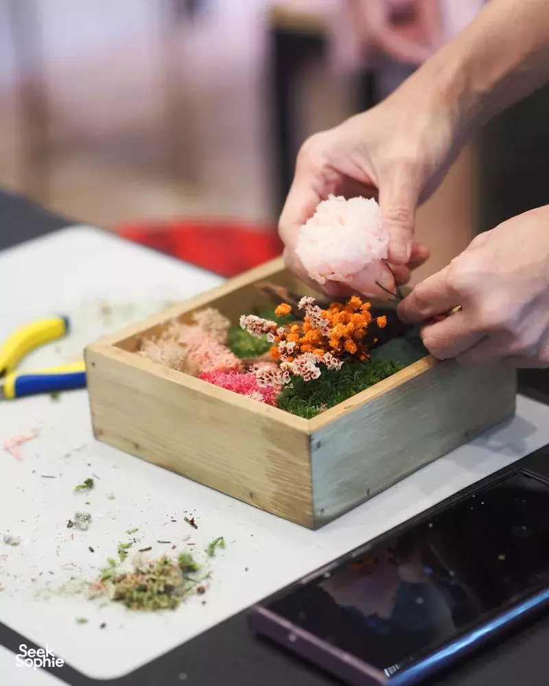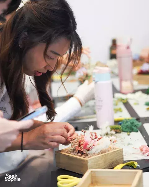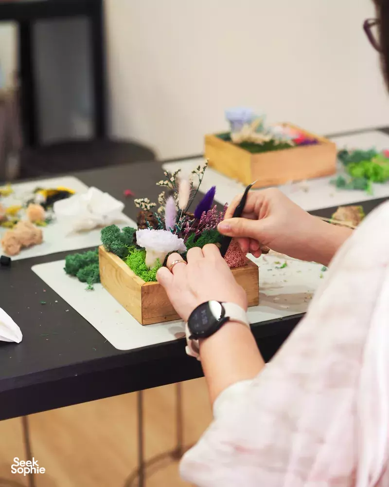 Always wanted to try arranging your own flowers? Wonder how florists create those stunning arrangements? Through this unique preserved moss frame floral arrangement workshop, you'll uncover the secrets of the trade! It's the only such workshop in Singapore, offering a chance to learn the art of flower arrangements using preserved flowers and mosses. Expect to delve into tips and tricks to develop your style and master the conditioning and aftercare of your creations. With no prior experience required and all tools and materials provided, you can unleash your inner florist and take home a masterpiece.What to ExpectDiscover the art of floral arrangement with preserved flowers and mosses.Learn tips and tricks to develop your own style.Master conditioning and aftercare techniques to keep your masterpieces looking fresh.Take home your handcrafted creation to brighten up your space.TipsNo prior experience is necessary.The workshop includes all necessary tools and materials.