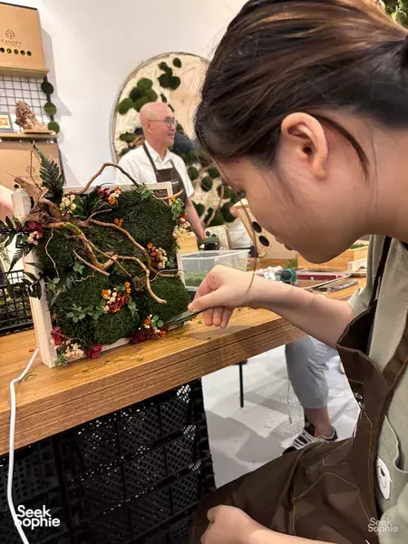 Build your very own transparent Bluetooth jukebox — a cool, compact speaker (22cm x 14cm x 8cm) filled with soft moss and preserved plants. It requires no maintenance and doubles as a calming little green corner for your home or a meaningful gift that lasts.You’ll learn how moss is preserved and get to play with different textures and greens, including premium moss from France and preserved foliage from Japan, Spain, and Italy. Then, have fun arranging everything inside your jukebox using the quality materials provided. By the end, you’ll have a working speaker that looks like a mini jungle — relaxing to look at, and even better when your favourite songs are playing.Important Note: Lead time of 1 month is required for large group bookings.What to Expect:Get the lowdown on moss: Start with a quick presentation and visual guide to all things mossy.Touch and feel: Discover different moss textures, learn about the processes that make them so long-lasting, and explore premium moss varietals from different parts of the world.Time to create: Enjoy ample time to express your artistic side, composing your own unique moss lamp with an adjustable light feature, driftwood, vines and preserved foliage.Leave with a masterpiece: Take home your personalised jukebox, ready to add a touch of magic to any room.