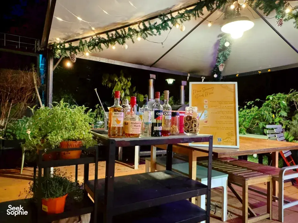 Looking for where to watch a movie under the stars in Singapore? You've found it! The Sundowner is the only place where you can enjoy a private outdoor cinema on a big screen – and the entire space is exclusively yours for an unforgettable evening. Picture twinkling night sky, comfy seating, and a giant screen under the stars. Whether you're celebrating a birthday, planning a unique date night, or just want to switch things up with friends, this is an experience you won’t forget!Unlike a regular movie night at home, your Movie Screening with us comes with a personal bartender mixing up craft cocktails (or wine, if that’s more your thing!). Plus, you’ll have total privacy—no interruptions, just your movies, your people, and the city skyline as your backdrop.What You'll ExperiencePick your movie & get comfy – Our Apple TV box ensures seamless streaming on the big screen in your very own starlit theatre. If you prefer, you can also bring a movie on your laptop, and the host will help set it up.Sip on handcrafted drinks – Enjoy three cocktails each, made fresh by your personal bartender. Wine is available too.Relax Under the stars – Watch your movie on a giant screen, with fairy lights and the cityscape adding to the atmosphere.Celebrating a Birthday? Enjoy a Free Prosecco!If you're celebrating a birthday, let your host know when booking and get:A complimentary bottle of prosecco to toast your special dayA private and cosy setting just for you and your guestsCustomisation options – you can decorate the place for a birthday setup, and have special music set up! If you need anything else, just check with your host :)This is perfect for an intimate celebration with friends, a romantic surprise, or even a fun, laid-back birthday treat for yourself.A Great Host Provides...Every Movie Screening booking includes complimentary use of our BBQ pit, perfect for grilling your own BBQ feast while the opening credits roll and the cool evening breeze flows in from the reserve.BBQ Setup Includes: Pit, fire tongs, and cutlery. Please Bring: Your own disposable plates, charcoal, fire starters, mesh grill, and foodNote: This is a self-service BBQ experience. Our team won't be available for cooking assistance or errands during your screening.Good to KnowBring your own snacks – You can order in your own bites. Drinks must be purchased on-site.Pet-friendly – Small and medium-sized pets are welcome.Full privacy – The bartender is on call but will leave you alone to enjoy your movie.Planning a proposal or event? – The hosts can help you set up the perfect surprise (extra cost applies: See "Exclusions").