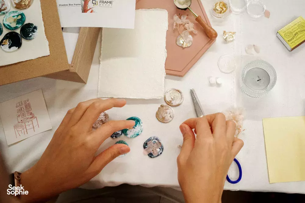 Escape the hustle and bustle of daily life with a unique and therapeutic wax-sealing and calligraphy workshop. With meticulous attention to detail, each workshop provides the finest quality materials and craftsmanship, ensuring an unparalleled artistic experience.What to ExpectDive into a 2-hour therapeutic calligraphy and wax sealing session.Explore basic copperplate calligraphy and write a quote with it for yourselfMaster the art of wax sealing and explore curated embellishments like vintage stamps and pressed flowersEmbellish your calligraphy piece and frame it in a shadow boxTake home your masterpiece, a daily reminder to slow down and savor meaningful connections.TipsLet your creativity flow and embrace the joy of making something with your own hands.Disconnect from technology and fully immerse yourself in the analogue experience.Enjoy a relaxing and social environment while exploring your artistic side.