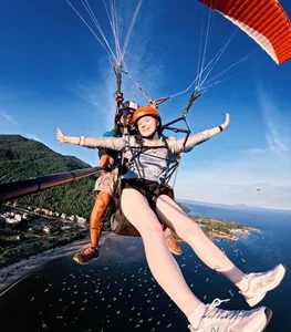 Bersiaplah untuk petualangan seru saat kamu terbang tinggi di langit Da Nang bersama Son Tra Paragliding! Pengalaman ini memberikan sudut pandang unik dan menakjubkan atas kota, memungkinkanmu melayang di atas Semenanjung Son Tra yang ikonik. Dengan pilot paralayang berpengalaman dan penuh semangat menemanimu, kamu akan merasakan campuran antara takut, gemetar, dan kegembiraan luar biasa. Mereka akan membimbingmu dari awal hingga akhir, memastikan pengalamanmu aman dan tak terlupakan. Bayangkan kamu meluncur dengan mulus di udara, menikmati pemandangan pantai yang masih alami, gunung hijau, dan lanskap kota yang berkilau di bawah — ini akan menjadi kenangan seumur hidup.Apa yang Akan Kamu DapatkanTerbang tandem dengan pilot selama 10–15 menit tergantung kondisi angin dan kesehatanmuVideo dan foto dari GoPro disediakan oleh MeBayLuon ParaglidingSeluruh perlengkapan dan alat keselamatan lengkapSertifikat penerbanganMinuman tersedia di lokasi terbangAsuransi penuh selama penerbanganTidak ada biaya tambahan jika ingin memperpanjang waktu terbang atau terbang bersama hewan peliharaanTransportasi pulang-pergi dari Hanoi ke lokasi terbang100% pengembalian dana jika kondisi cuaca berubahRencana PerjalananTemui instruktur paralayang di zona pendaratan: 33-34-35 Hoàng Sa, Thọ Quang, Sơn Trà, Đà NẵngTransfer ke lokasi lepas landas dekat area puncak Ban Co (catatan: belum termasuk dalam harga tur).Mendapat briefing keselamatan dan pemakaian perlengkapan yang diperlukan.Rasakan sensasi terbang melintasi Semenanjung Son Tra sekitar 10-15 menit sambil menikmati pemandangan dari atas yang luar biasa.Ambil dan terima foto serta video menakjubkan dari penerbanganmu.TipsBiaya transfer dari zona pendaratan ke lokasi lepas landas adalah VND 100.000 per orang sekali jalan, dibayar langsung ke sopir.Syarat PenumpangAnak di bawah 3 tahunIbu hamilOrang dengan masalah jantungPengguna kursi rodaOrang di atas 75 tahunCatatanKamu boleh membawa tas kecil (1-2 kg) berisi barang pribadi seperti ponsel, kunci, dan KTP selama penerbangan.Jangan membawa koper besar atau berat; jika membawa, harus diletakkan di kaki gunung.Penumpang harus punya minimal 4GB ruang kosong di ponsel untuk mengunduh foto dan video setelah terbang.Di area lepas landas dan pendaratan, demi keselamatan, penumpang yang belum atau sudah terbang tidak boleh mendekati area penerbangan. Jangan menginjak tali atau parasut. Selalu waspada agar tidak masuk ke jalur terbang pilot.Dilarang merokok di area penerbangan.Paralayang adalah olahraga ekstrem, jadi kamu tidak bisa terbang sendiri (kecuali kamu sudah ikut pelatihan dan lulus ujian sertifikasi).Setiap penerbangan terdiri dari 1 pilot dan 1 penumpang.