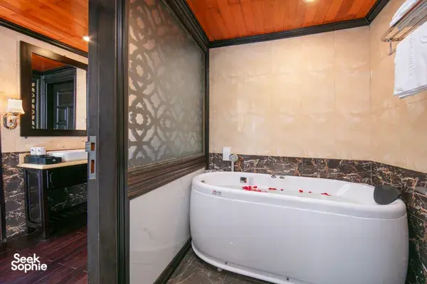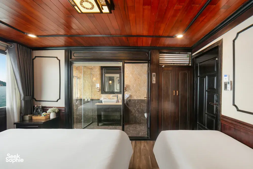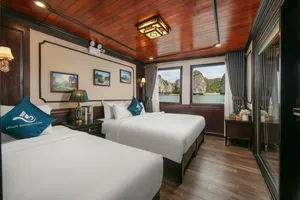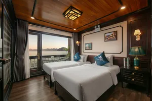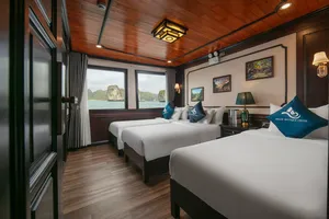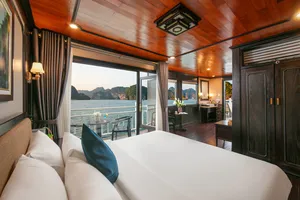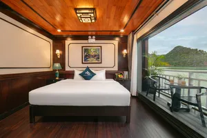 Kalau kamu cari pelayaran 5-bintang di Teluk Ha Long yang nyaman tapi tetap ramah di kantong, kapal bergaya neo-klasik ini layak banget dipertimbangkan. Baru direnovasi total November 2024, interior kayunya berpadu dengan pelayanan hangat dan ramah. Dengan hanya 24 kabin, suasana di kapal terasa lebih santai dan personal dibandingkan kapal besar lainnya. Kamarnya nyaman, ada balkon pribadi, dan desain elegan – harganya pun jauh lebih hemat dibandingkan pelayaran sejenis.Kapal ini mengikuti rute klasik dan paling populer – Gua Surprising, Gua Luon, serta Pulau Titop – jadi kemungkinan akan ketemu rombongan lain di darat, apalagi di jam-jam ramai. Jadwalnya cukup padat untuk 2 hari, tapi semua aktivitas sifatnya opsional: kalau kamu lebih suka santai, tinggal di kapal aja, leyeh-leyeh di dek, atau menikmati pemandangan dari balkon kamar.Cocok banget buat kamu yang baru pertama kali ke Ha Long dan pengen lihat semua spot ikoniknya, sambil tetap menikmati kenyamanan dan suasana romantis khas Vietnam – tanpa harus bayar mahal atau merasa jadi bagian dari tur besar. Mau itu kayak, demo masak ringan, atau sekadar duduk santai dengan koktail sambil lihat teluk, semuanya ada di sini.Apa yang Bisa DiharapkanJelajahi Gua Surprising yang terkenal – gua terbesar dan salah satu paling indah di Ha LongBerenang atau hiking ke titik pandang di Pulau TitopKayak atau naik perahu bambu di laguna tenang Gua LuonMenikmati 4 kali makan di kapal, termasuk 2 buffet dan hidangan khas VietnamIkut demo masak tradisional Vietnam saat matahari terbenam sambil minum koktailCoba mancing cumi di malam hari atau karaoke-an seruNgopi sambil nonton matahari terbit dan terbenam dari atas kapalInfo PentingGratis dekorasi kamar untuk bulan madu atau ulang tahun (kalau tanggalnya maksimal 2 hari dari hari H – tinggal infoin ke kru kapal)Bisa pilih antar-jemput dari Old Quarter Hanoi saat pemesananMinuman tambahan dikenakan biaya (di luar air mineral gratis di kamar)Liburan bareng anak?Anak di bawah 5 tahun gratis (satu anak gratis per kamar)Kalau kamu bawa anak dan ingin info lebih lanjut, hubungi kami via chat atau emailFasilitas24 kabin dengan kamar mandi dalam, AC, dan balkon pribadiAda kamar connecting untuk keluargaDek luas untuk aktivitas grup atau bersantaiDemo masak Vietnam, karaoke, main kartu, dan mancing cumiLayanan pijat/spa tersedia (dikenakan biaya tambahan)