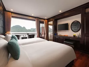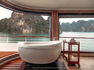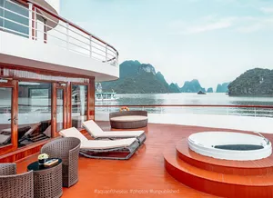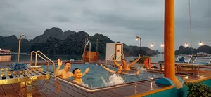Tur kapal pesiar bintang 5 di Teluk Halong ini membawa Anda menjelajahi jalur yang lebih tenang di Teluk Lan Ha dan termasuk singgah di Pulau Cat Ba. Anda akan menemukan sudut-sudut tersembunyi yang jarang dikunjungi - Gua Rumah Sakit Militer yang jarang dikunjungi. Di dalam, Anda akan melihat stalaktit yang indah sambil mendengarkan cerita luar biasa tentang ketahanan Vietnam saat perang - kecerdasan, ketahanan, dan kreativitas tentara dan insinyur Vietnam yang menjadikan tempat ini persembunyian mereka. Pengalaman ini jarang ditemukan karena menggabungkan alam dan sejarah dengan cara yang berbeda dari kebanyakan kapal pesiar.Karena ini adalah kapal pesiar 3D2N, Anda punya waktu untuk kayak di sekitar daerah Tra Brau dan mengunjungi Pulau Cat Ba serta bersepeda di sekitar desa nelayan Viet Hai - sesuatu yang tidak semua kapal pesiar lakukan.Kapal ini sendiri sangat cantik - setiap kamar dilengkapi balkon pribadi dan bathtub, sempurna untuk menikmati pemandangan. Ada dua restoran, jacuzzi luar ruangan besar, gym lengkap, spa, dan dek matahari yang cocok untuk bersantai. Mereka bahkan punya ruang bermain anak khusus, jadi jika Anda bepergian dengan anak kecil, ini sangat cocok!Tamu mengatakan layanan sangat baik, staf yang ramah dan melampaui harapan, membuat setiap momen terasa pribadi. Jika Anda merayakan acara spesial, beri tahu kami di bagian "catatan tambahan" saat check out dan kru dapat mengatur dekorasi kamar gratis.Apa Yang DiharapkanAkomodasi Mewah: Nikmati kamar pribadi dengan balkon dan bathtub pemandangan laut - sempurna untuk menikmati keindahan teluk.Makan Lezat: Santap hidangan gourmet di dua restoran di kapal, dengan bahan segar lokal dan cita rasa internasional.Kolam Renang Luar Ruangan dan Dek Matahari: Berjemur di bawah matahari, berenang di kolam besar, atau ikuti kelas Tai Chi yang menyegarkan di dek yang luas.Spa dan Kesejahteraan: Manjakan diri dengan layanan spa yang dirancang untuk rileks dan menyegarkan atau berolahraga di gym!Kayaking dan Berenang: Jelajahi teluk tersembunyi, kayak di air turquoise, dan nikmati mandi segar di perairan hijau Lan Ha Bay.Itinerari Lanjutan: Kunjungi Pulau Cat Ba, bagian dari UNESCO World Heritage, dan bersepeda di desa Viet HaiTai Chi dan Kegiatan: Mulai hari Anda dengan sesi Tai Chi di dek, atau coba memancing cumi di bawah langit berbintang.Hiburan dan Relaksasi: Nikmati musik live, karaoke, atau bersantai dengan buku di lounge yang nyaman.TipsBawalah sepatu nyaman untuk menjelajah gua dan desa.Jangan lupa baju renang dan tabir surya untuk menikmati kolam dan dek matahari.Bawa kamera untuk mengabadikan pemandangan yang menakjubkan dan momen tak terlupakan.Fasilitas & Fasilitas KapalDua Restoran GourmetKolam Renang Luar RuanganDeck Matahari LuasGym ModernSpa MewahKamar Balkon PribadiBathtub Pemandangan LautLounge Karaoke dan HiburanWi-Fi Gratis
