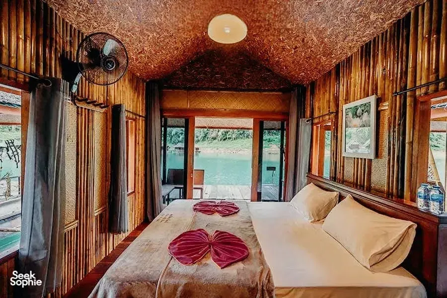 There are tons of floating stays on Cheow Lan Lake, from simple bamboo bungalows to fancier rafthouses. The main thing to look out for when booking isn’t the type of place, but what you actually get for the price. It really depends on your comfort level vs how much you’re willing to rough it out. Here’s a rough guide, rates based on two persons to a room: