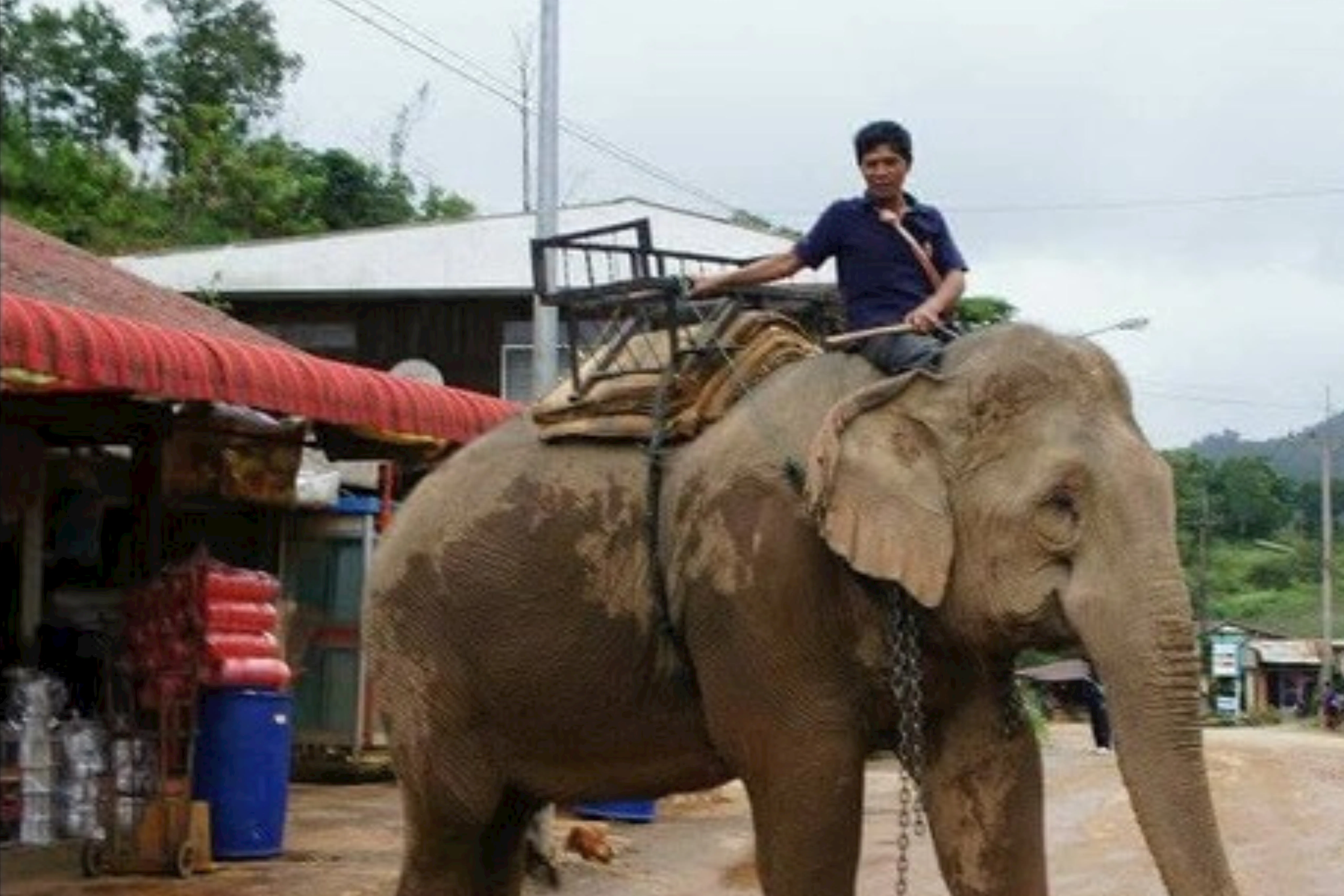 With the logging ban, her owner could no longer afford to feed and care for her. So, he rented her out to a tourist camp, where she was forced to carry people on her back.