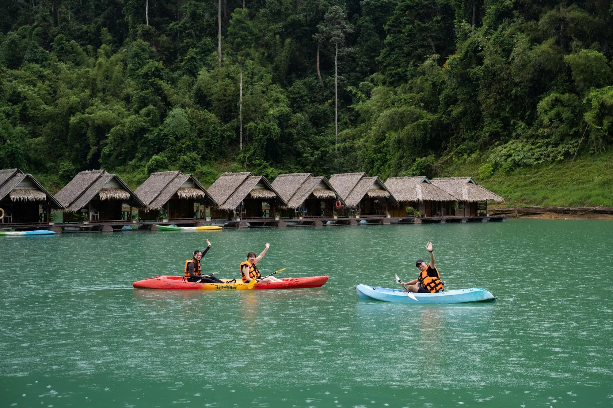 Kalau privasi penting, pesan kamar pribadi di rafthouse mewah atau menginap di Desa Khao Sok.