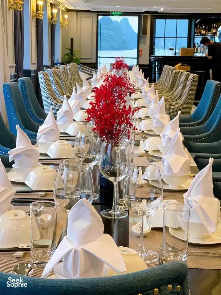 Pasukan di Doris Cruise berdedikasi untuk memberikan layanan terbaik dan pengalaman yang tak terlupakan kepada setiap tetamu, sambil memastikan tahap keselamatan tertinggi ketika membawa pelancong ke tempat-tempat menarik dan aktiviti seronok di sekitar teluk. Rasai keindahan Vietnam sambil bangun dengan pemandangan bilik yang menakjubkan dan menikmati hidangan lazat setiap waktu makan!