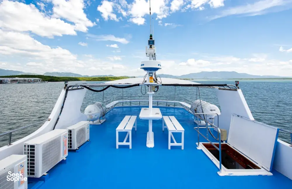 Naik ke kapal, taklimat bot, sediakan peralatan, dan makan malam di atas kapalHari 2:
