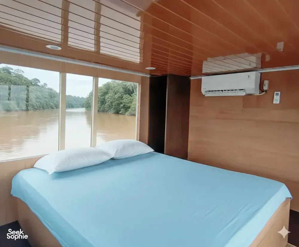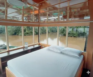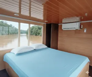 Pengalaman petualangan orangutan selama 3 hari ini adalah cara paling nyaman untuk menjelajahi Taman Nasional Tanjung Puting di Kalimantan. Berbeda dari kebanyakan kapal klotok tradisional yang tidur di kasur terbuka, kapal ini menyediakan kabin pribadi ber-AC untuk maksimal 4 tamu — jadi tidak perlu lagi melawan nyamuk sepanjang malam. Ada tempat tidur yang nyaman, ruang pribadi untuk bersantai, dan Anda tidak lagi harus berjuang melawan nyamuk di malam hari. Selain itu, ini adalah salah satu dari sedikit kapal di taman yang menggunakan air bersih untuk mandi dan toilet — bukan air sungai keruh!Ini cocok jika Anda ingin pengalaman hutan hujan lengkap tanpa kehilangan kenyamanan. Tidak hanya akan berlayar melewati hutan dalam rumah terapung yang nyaman, tetapi juga dipandu oleh ahli lokal berpengalaman lebih dari 30 tahun. Anda tidak cuma melihat orangutan — Anda memahami cerita mereka, habitatnya, dan tantangan yang mereka hadapi, semua saat beristirahat di salah satu tempat paling damai di Kalimantan.Ini pilihan yang bagus untuk keluarga, pasangan, penjelajah hutan pertama kali, dan siapa saja yang ingin berhubungan dengan alam tanpa harus berjuang keras. Anda tetap akan melakukan semua kegiatan alam liar — trekking di hutan, mengamati satwa, menyusuri sungai berair hitam — hanya saja dengan kasur yang empuk dan shower segar menunggu setelahnya.Yang DiharapkanKapal klotok paling nyaman di daerah ini — kabin ber-AC dan shower air bersihKunjungi semua 3 stasiun pemberian makan orangutan: Tanjung Harapan, Pondok Tanggui & Camp LeakeySailing perlahan di sungai melalui pemandangan hutan hujan yang menakjubkan dan anak sungai berair hitamJalan-jalan di hutan siang dan malam untuk melihat primata yang lucu, fungi bercahaya, tarantula, dan lainnyaMakan malam disinari kunang-kunang dan menikmati bintang di tepi sungaiBerhenti di rumah panjang Dayak tradisional untuk pengenalan singkat tentang suku-suku di KalimantanPemandu berpengalaman yang penuh semangat dengan puluhan tahun pengalamanBerangkat dari pelabuhan pribadi di Kumai dan hindari kemacetan serta antrian di pelabuhan umumYang Perlu DiketahuiIni adalah kapal klotok paling mewah — kabin ber-AC dan pancuran/toilet air bersih yang lengkapPengalaman pribadi, disesuaikan untuk grup AndaSemua makanan, camilan, teh/kopi, dan transfer termasukSinyal telepon minim selama perjalanan — cocok untuk detox digitalMedan di stasiun pemberian makan ramah pemula tapi bisa berlumpur — bawalah sepatu yang bagusTidak termasuk: tips, penerbangan, atau camilan tambahan selain makananFasilitasKabin pribadi ber-AC dengan tempat tidur dan kelambuShower air bersih dan toilet di kapal (bukan air sungai)Semua makanan dimasak segar oleh koki di kapalDeck melihat pemandangan dan area makan di atas kapalTransfer ke dan dari bandara atau hotel di Pangkalan BunAkomodasi1 x Kabin Lower Deck terbuka : Menampung hingga 4 tamu dengan kipas, dilengkapi 1 tempat tidur double dan 2 tempat tidur tambahan1 x Kabin Double (Upper Deck) : Menampung hingga 3 tamu dengan AC, dilengkapi 1 tempat tidur double dan 1 tempat tidur tambahan1 x Kabin Keluarga (Lower Deck) : Menampung hingga 4 tamu dengan AC, dilengkapi 1 tempat tidur double dan 2 tempat tidur susunKami menyediakan kasur, kelambu, dan selimut untuk tidur nyaman di dekKapaldapat menampung maksimum 7 orang — tamu tambahan (hingga 4) akan tidur di dek terbuka, favorit bagi yang suka tidur dengan angin alami dan mendengar suara hutan. Hubungi kami sebelumnya jika lebih dari 4 tamu bergabung.