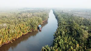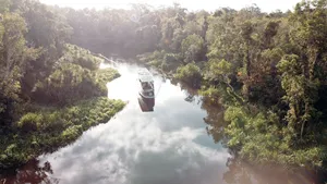 Sailing di sungai berair hitam melalui ekosistem hutan hujan yang unik