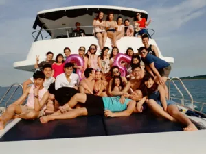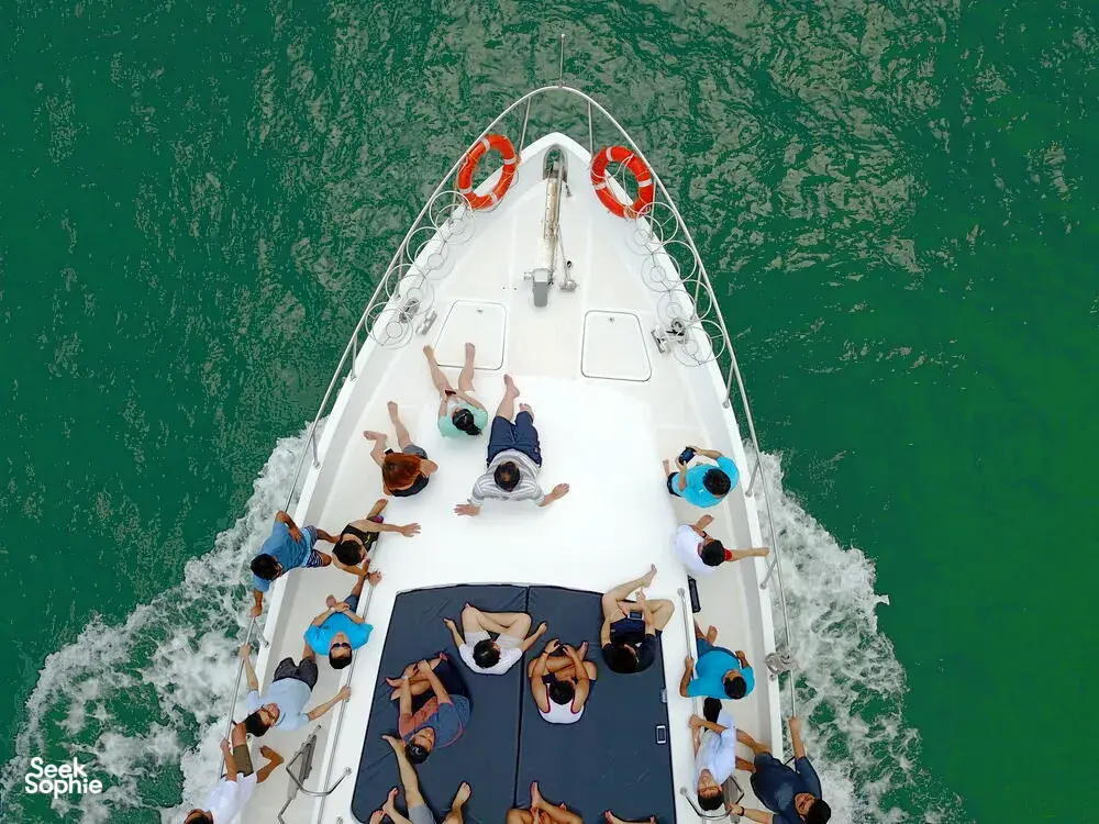 Kalau kamu punya rombongan besar dan pengen bersenang-senang, yacht besar ini jawabannya! Kapal besar dengan flybridge ini seperti pesta di atas air, dengan banyak ruang untuk bersantai dan bahkan ada tempat BBQ gratis buat panggang-panggang makanan enak.Bawa minuman favoritmu (kecuali anggur merah, supaya tidak noda!), nyalakan musik di speaker Bluetooth, dan buat kenangan seru di atas kapal. Cocok buat grup yang mau merayakan sambil bersenang-senang!Apa yang Bisa DiharapkanSuasana pesta yang luas: Kapal ini punya 3 deck, kabin, dan ruang buat 36 orang!Pesta BBQ: Bisa panggang di tempat dengan BBQ gratis di kapal (biasanya biaya $150!).BYOB (Bawa Minuman Sendiri): Isi ulang minuman favoritmu, tapi ingat, anggur merah nggak boleh supaya deck nggak noda.Fasilitas lengkap: Karaoke, kulkas, freezer, TV, microwave, dan speaker Bluetooth tersedia.Aktivitas air opsional: Kalau tersedia, coba kayak atau paddleboard untuk jelajah air (hanya saat perjalanan siang hari).TipsJangan berenang malam hari: Aktivitas air nggak diizinkan setelah jam 7 malam.Hiasan diperbolehkan: Datang 30 menit lebih awal untuk siap-siap acara spesial, tapi patuhi kebijakan dekorasi kapal.Perhatian anggur merah: Ingat, anggur merah nggak diizinkan di atas kapal supaya deck tetap bersih. Pilih minuman lain dan rayakan dengan semangat!Fasilitas & Fitur KapalRuang luas & santai: 3 deck buat kenyamanan dan ruang maksimal.Isi ulang keseruan: Kabin, kulkas, freezer, dan microwave buat terus bersenang-senang.Nyalakan suara: Karaoke seru di kapal untuk bernyanyi bareng.Hiburan lengkap: TV 40 inci dan speaker Bluetooth buat musikmu.Petualangan air (siang hari): Manfaatkan kayak atau paddleboard (tergantung ketersediaan).