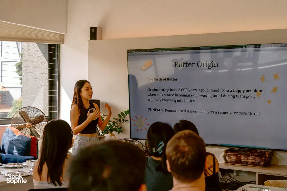 Workshop pembuatan mentega pertama (dan satu-satunya!) di Singapura adalah cara yang menyenangkan untuk tim terhubung lewat rasa, kreativitas, dan kepribadian. Cocok untuk ikatan tim, pesta bujang, atau teman yang mau sesuatu yang lebih personal daripada sekadar brunch di kafe, pengalaman selama 1,5 jam ini mengubah bahan sederhana menjadi sesuatu yang benar-benar milikmu.Kalian akan mulai dengan membuat mentega dari nol, lalu beralih ke bagian kreatif: menyesuaikan rasa dengan berbagai rempah dan campuran tak terduga - bayangkan mentega beraroma seperti Hot Honey, Rumput Laut Kecap, Miso Bawang Putih, dan lainnya!Format DIY ini memungkinkan semua orang mengekspresikan preferensi rasa mereka, dari yang berani dan gurih hingga yang lembut dan nyaman. Seru melihat bagaimana kepribadian berbeda muncul lewat rasa - dan ya, tim boleh bersaing untuk mendapatkan mentega paling unik atau favorit banyak orang.Ramai pemula dan menyenangkan, workshop ini lebih tentang kegembiraan membuat daripada sekadar mencicipi hasil sendiri. Semua orang pulang dengan toples mentega yang unik milik mereka, plus inspirasi segar untuk terus bereksperimen dengan makanan setelah sesi berakhir.Apa yang Akan Kamu DapatkanMembuat mentega dari nol sendiri. Tanpa mesin, cukup diguncang sajaPelajari asal-usul, jenis, dan profil rasa mentegaMemberi rasa pada mentega dengan campuran dari bar campuran khusus (rempah, rumput laut, dan lainnya!)Sesuaikan dan beri label pada toplesmu sendiri untuk dibawa pulangSesi interaktif dan santai dalam suasana pribadi kecilBawa pulang 1 x 100g toples mentega buatan tangan. Mau lebih banyak? Tingkatkan ke 2 x 40g toples di bagian tambahan.Yang Perlu DiketahuiTidak perlu pengalaman memasak sebelumnyaBahan dan alat disediakan semuanyaCocok untuk kelompok kecil dan acara membangun timSemua bahan bersertifikat Halal, jadi pengalaman ini ramah Muslim!*Harap dicatat bahwa titik pertemuan akan berbeda tergantung ukuran kelompok. Hubungi kami agar bisa beri penjelasan. Alternatifnya, workshop bisa dilakukan di luar lokasi di tempat yang kamu sediakan.Biaya di luar lokasi: $100Biaya gratis untuk kelompok 20 orang atau lebihPersyaratan tempat:Meja dan kursi untuk semua pesertaProyektorKulkas atau freezer (bagi yang perlu!)Bak/ wastafel yang mudah diakses
