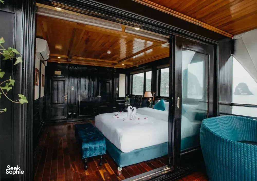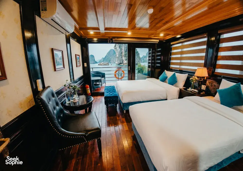 Anh started her cruise line back in 2018 with a simple idea—smaller boats, better experiences. Instead of going big, she chose to build a handful of cosy wooden boats, each one thoughtfully designed to suit small groups, couples, or families. She picked Lan Ha Bay as her sailing route—a quieter, less touristy spot near Halong Bay—so her guests could enjoy the same stunning views without the crowds. From peaceful kayaking trips to relaxed evenings fishing off the side of the boat, Anh’s way of hosting is all about slowing down and making people feel at home on the water.