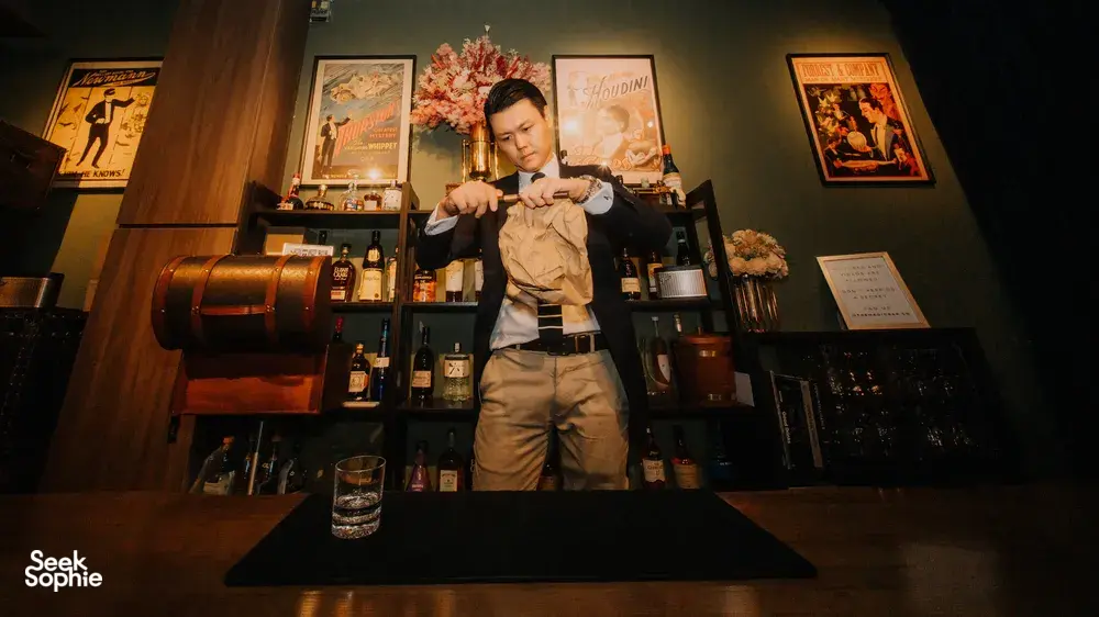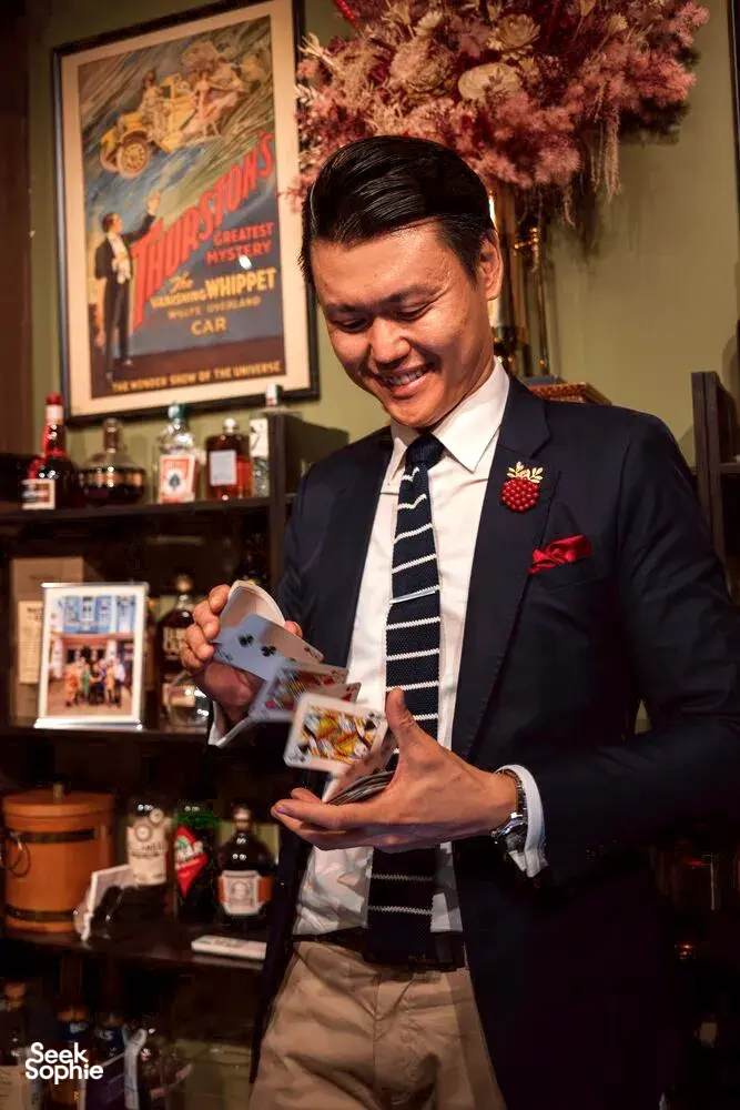 Alexander Yuen is the founder of The Magic Bar, which he started in 2023. His idea for the bar came from his time performing at a Japanese magic bar in Singapore over a decade ago. Back then, he opened for a Japanese magician at Bar84, an experience that left a lasting impression. When that bar closed, Alexander tried to keep the idea going by teaming up with other cocktail bars, but they didn’t believe in the concept. So, years later, he built it himself. Now, at The Magic Bar, guests sit close to the action—just like in the traditional Japanese magic bars he admired—and enjoy a unique mix of great drinks and live, skilful magic right at the table.