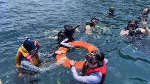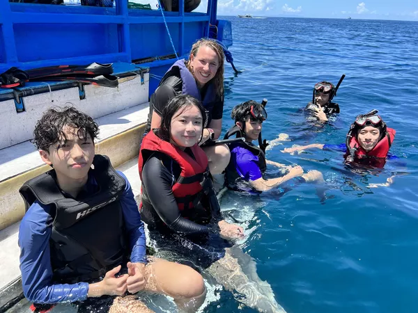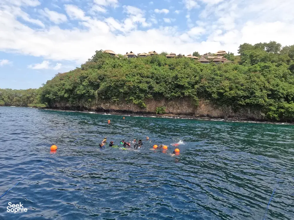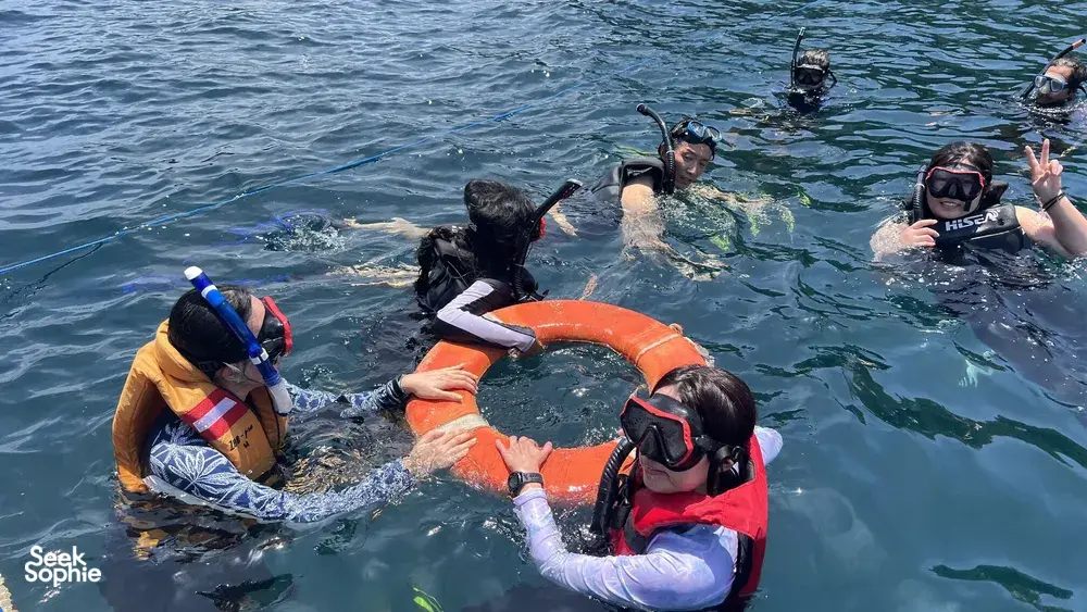- 防晒措施——建议带帽子、长袖T恤(长袖更佳)或防晒衣,而非普通防晒霜,甚至使用对珊瑚安全的防晒霜