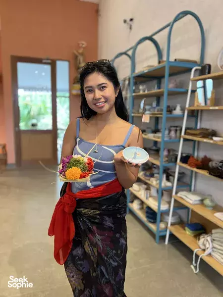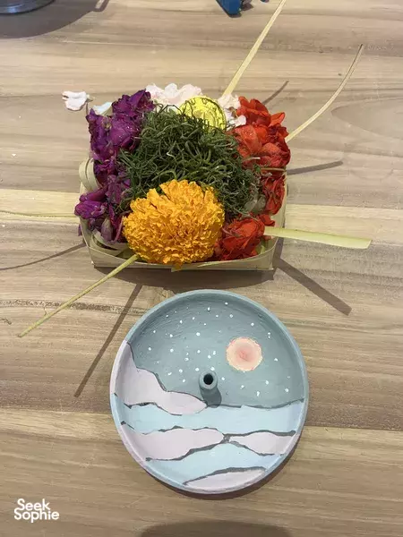 这是在苍古度过时光的有趣方式 —— 发挥创意画画加上学习巴厘岛传统供品 Canang Sari!通过这堂 Canang Sari 和陶瓷香炉课程,深入体验真实的巴厘文化!导师会介绍制作 Canang Sari 的传统背后的文化意义,并一步步带你亲手制作自己的供品。你还可以亲自绘制陶瓷香炉,让它充满你的创意和个人意义。这个独特体验适合想要深入了解巴厘文化又想动手创作的朋友。体验亮点亲手制作巴厘传统供品 Canang Sari了解 Canang Sari 在巴厘文化中的意义绘制属于你自己的陶瓷香炉学习陶艺绘画技巧成品可带回家,主办方也可寄到你所在国家!温馨提示运费根据你所在的国家或地区而不同,起价为每件 IDR 100k。建议穿着舒适的衣服,因为要接触陶土和颜料