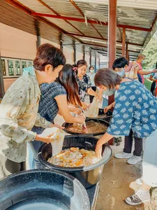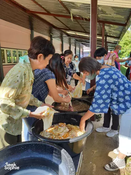 在距离清迈市区仅15分钟的温馨家庭工作室里,使用树叶、花朵和当地艺人流传下来的传统染色技巧,亲手创作你的专属生态艺术作品。你将学习不同植物如何在布料上留下痕迹,并通过传统的煮染方法(完全不用电或机器!)提取它们的天然颜色和图案。我们喜欢的一点是:每一块作品都是独一无二的!颜色、纹理,甚至你选择的植物都会带来完全不同的图案。你不仅能带走一块漂亮的布艺作品,更能体会到清迈天然染料的魅力,以及那些守护这门手艺的艺术家们的用心。体验内容热情欢迎并介绍生态印染及其环保意义。了解不同植物材料如何印染,并准备你的创作元素。将你采集的叶子和花朵有创意地排列在布上。使用传统煮染工艺(完全不需要用电或机器!)将植物图案转印到布料上。揭开属于你自己的作品——一件纯天然的美丽印花,可以带回家。整个过程轻松惬意,由友善的当地老师全程陪伴指导。温馨提示这是为小型团体设计的私人课程,最多12人。工作坊地点距离清迈古城约15分钟。若团体人数为4–12人,则地点在Central Festival Chiang Mai附近。适合8岁以上的儿童及成人。现场提供所有材料和工具——你只需带上自己和你的创意!无需任何基础经验。是非常适合初学者的放松活动。不提供交通,请自行前往工作坊地点。有上午(9:00–12:00)和下午(13:00–16:00)两个时段可选。由于制作过程包括加热和蒸煮,部分环节需注意热物操作(老师会全程协助)。建议穿着舒适、可以弄湿或弄脏的衣物。