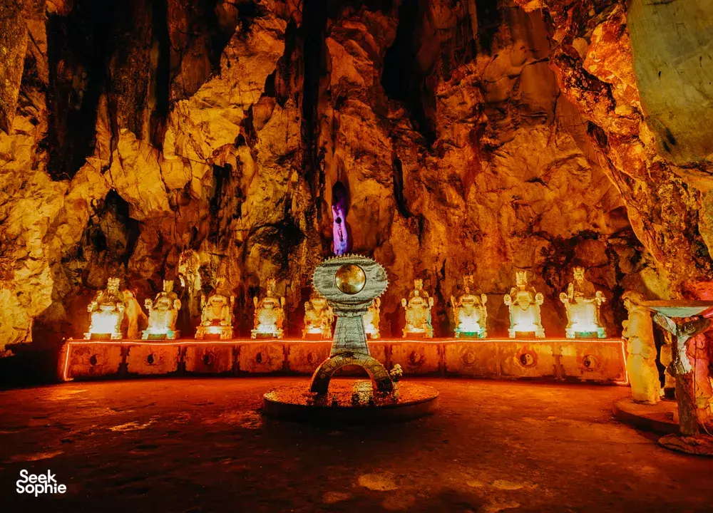 享受一趟7小时的私人汽车之旅。首先探访美山圣地,这里有大约70座大小不一的建筑,建于公元4世纪,曾用于接待皇室成员、贵族和举行重要宗教仪式。随后在当地餐厅享用美味的米粉午餐。接着前往大理石山,探索洞穴、山谷、佛教寺庙、神殿、印度教洞窟等。行程包含从岘港/会安接送、配有经验丰富司机的空调私人车辆、会说英语的导游、当地餐厅午餐、美山和大理石山门票,以及大理石山电梯票。