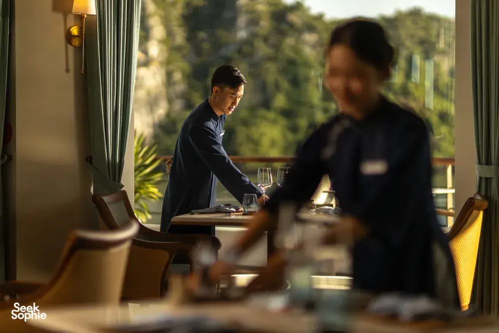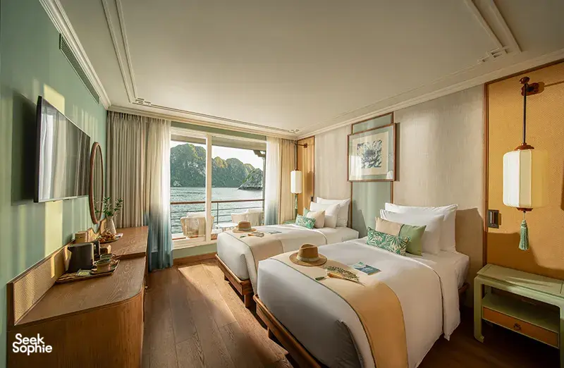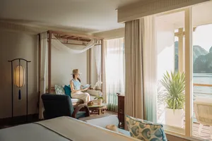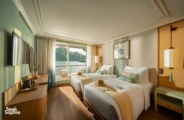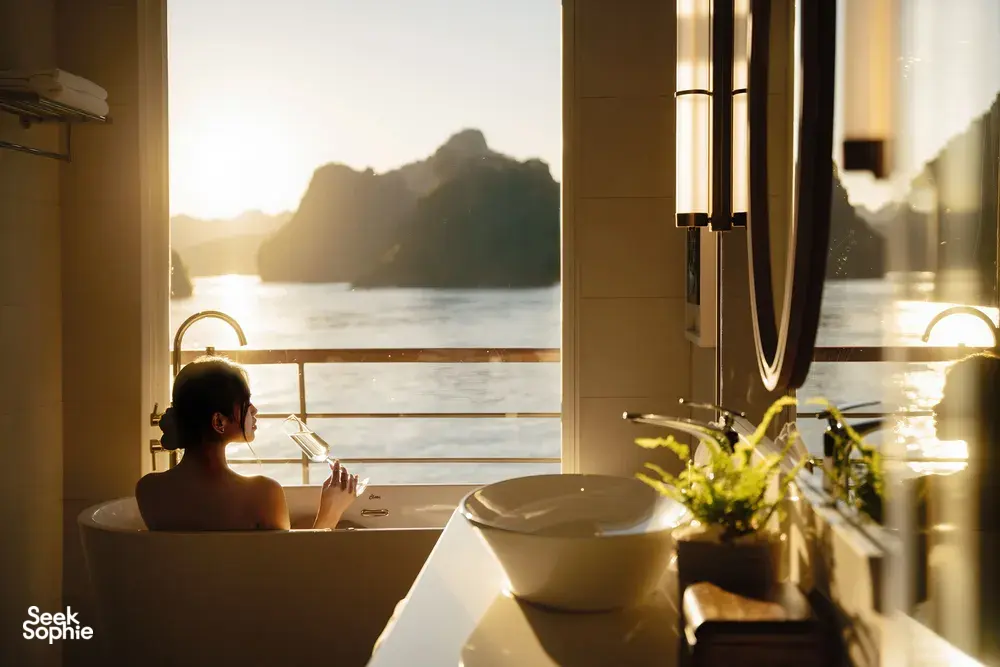 如果你觉得所有下龙湾的邮轮都差不多,那么这一趟绝对会让你惊喜。这艘精品养生游轮专为想远离人潮、追求更宁静且有意义旅行体验的旅客设计。你不会挤在Sung Sot洞或Ti Top岛和其他游客抢位置。相反,你将前往鲜少人知的角落,比如Ho Ba Ham、Tien Ong洞和Cua Van浮动村——大部分游客根本到不了这些地方。风景依旧壮丽,但氛围更宁静、更冥想、更疗愈。船上的一切都为放松和身心照顾而设计。早晨在神秘洞穴中进行冥想散步,接着享受免费的草本足浴和脚部按摩。傍晚可以在泳池边吃点心,晚上在柔和灯光下抬头看星星。客舱内的小冰箱也备有果汁、茶、咖啡——全部免费畅饮!这也是少数几家环保意识强的游轮之一。零一次性塑料、每间客房都有可重复使用的水瓶,船员全年进行海湾清洁。而且这艘船是精品邮轮,仅有20间美丽客舱,比起其他大型下龙湾游轮,更私密、更有品质感。如果你在乎慢旅行、身心健康、并想用不同角度看下龙湾,那这趟旅程非常适合你。体验亮点专注于身心健康,包含草本足浴+洞穴冥想散步客房小冰箱免费饮品 — 果汁、软饮、高级茶与咖啡包含多项身心活动,如冥想步行和水疗按摩带你前往秘境,避开观光人潮。划独木舟游览Ho Ba Ham和Cua Van浮村新型精品船,仅有20间客舱,服务周到非主流路线,更加宁静自在夕阳小点、泳池、精致晚餐与星空下冥想放松可选夜间墨鱼钓鱼和清晨巡航体验贴心小提醒2天1夜行程,可加选从河内往返接送(约2.5–3小时)步行和划船适合新手 — 不需经验第一天上午11:45左右登记,第二天上午9:30前退房无隐藏费用 — 大部分饮品与养生活动都已包含因航行区域偏远,WiFi可能不稳定(但这也是一部分魅力)如有饮食需求,请提前告知工作人员设施服务20间景观客舱,全为套房式浴厕(可选4种房型)温水泳池与多层甲板休憩区免费客房迷你吧,饮品齐全包含冥想散步、水疗等养生活动餐点包含点餐式、自助餐和五道式晚宴环保设计,设有饮水站,无塑政策每间客舱附赠两顶巴拿马帽和离船礼赠