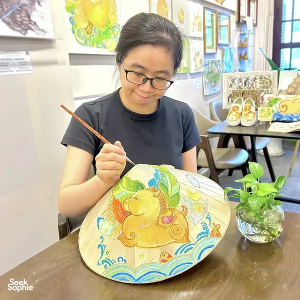通过在传统斗笠上作画,体验越南民间艺术的魅力。