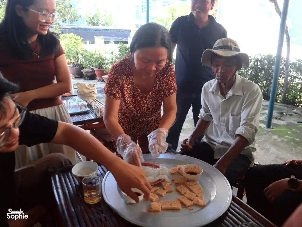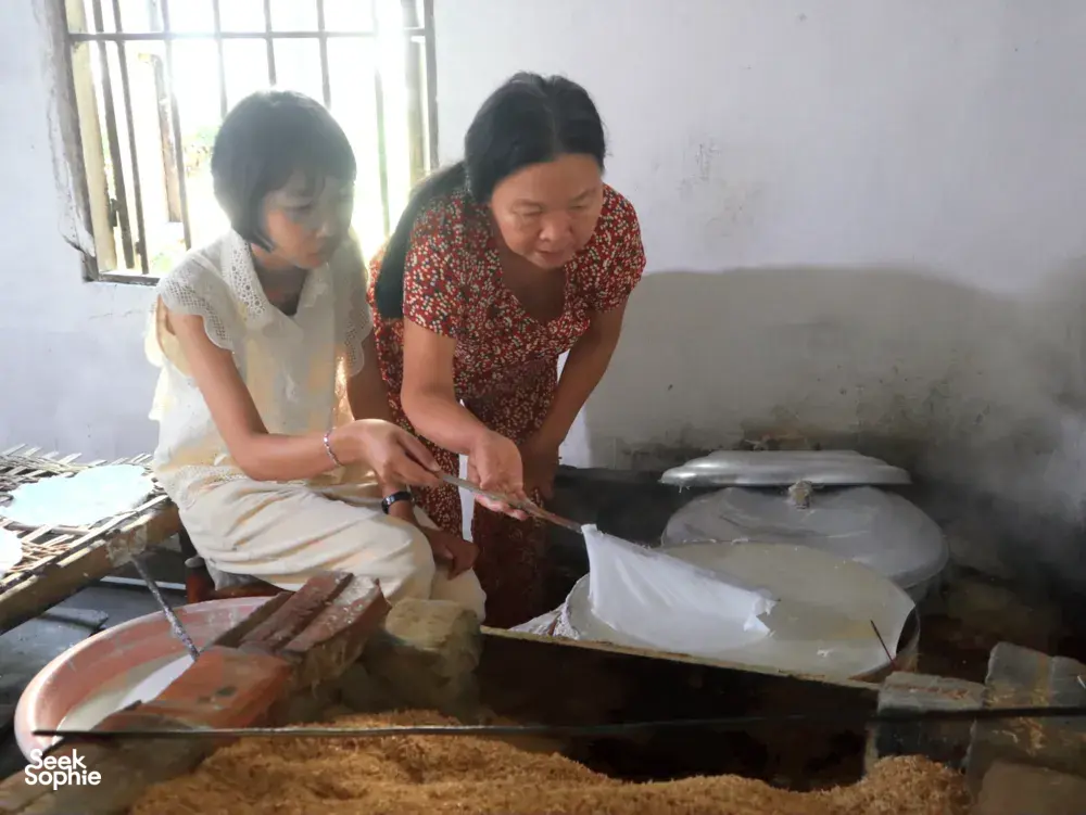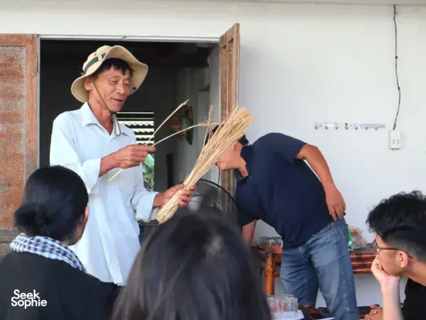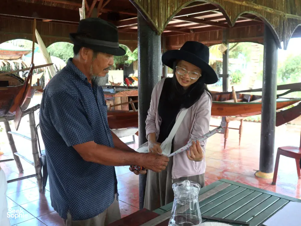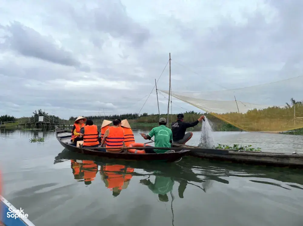 就在会安古城对面,坎金村是“风景”变成了解当地生活的钥匙之地。大多数游客只是搭乘快艇拍照而已。这次体验不同:它用河流作为故事线——生命线,带来清水和肥沃的淤泥,塑造了渔业、造船、稻米叶子制作和金邦木工等一代又一代的生计。你将乘坐手划的小船穿梭在宁静的水道上,由当地人引导,他们像家人一样熟悉这条河。他们会指出游客常忽略的小生命迹象——鱼、虾、水生植物——并分享社区如何用红树和水百合修复河岸栖息地的故事。亮点在于人们。在双语导游的实时翻译下,你将与多代本地人进行真实交流:一位终身渔民还记得鱼多得可以用手抓的时代;一位保存传统 ghe bầu 技艺的造船工匠;以及一户四代传承的稻米叶子家庭,展示农村生活几乎利用了稻谷的每一部分。你还可以亲手尝试——在著名的金邦木工村雕刻木头,并与当地人一起制作广式米粉,了解工艺和背后的故事。这一天真正有意义的地方在于它的再生故事。多年来,这里许多家庭依赖高影响的捕鱼方式(如钢笼和拖网),虽然短期获利,但逐渐耗尽鱼类资源,破坏河流生态。当河流开始变化——鱼类减少,水道变得脆弱——社区做出了艰难的转变。它们选择不再过度开发,而是保护赖以生存的资源。如今,许多当地人成为河流守护者,通过以保护为导向的社区学习旅游获得收入,优先保护而非捕捞。适合希望深入了解,而非仅仅打卡的旅行者:低碳、缓慢的旅程——用手划船、骑自行车,帮助你通过生活在这里的人了解越南。期待体验沿着 Thu Bon 河的划船旅行,了解其生态系统和渔民的保育故事访问像金邦这样的传统工艺村庄,包括与技艺传承者一起的手工雕刻工作坊学习制作广式米粉,探索稻米种植、水源和地方历史的联系与从破坏性捕鱼方法转变为河流守护者的居民进行真实对话——倾听他们的第一手故事特别注意事项这是一次大约4小时的私人体验,所有活动均由英语导览旅程涉及在不平坦的路面行走和骑行,建议穿舒适的鞋子你将直接支持当地经济;部分费用将用于社区主导的项目和工匠当地导游主要讲越南语。会有一位讲英语的协调员全程陪同——实时翻译,补充背景信息,提出启发性问题以引发更深入的对话。设施/配备导游带领的划船与自行车装备传统工艺和面条制作的实践工作坊热情的本地导游和讲故事者,致力于保护社区和环境支持当地工艺师和项目,让你的访问直接为社区的可持续未来做出贡献