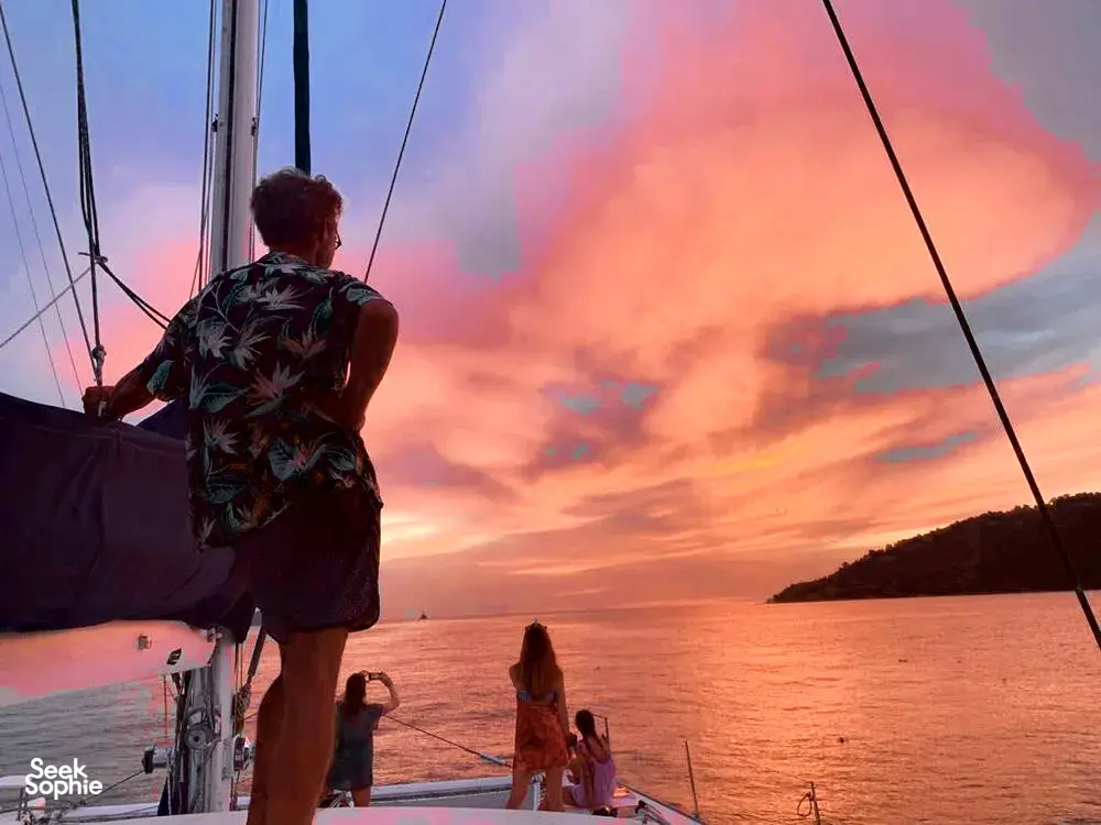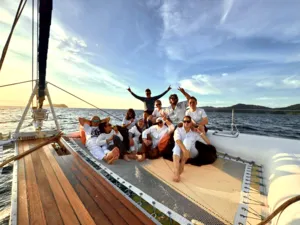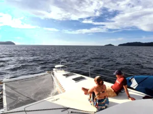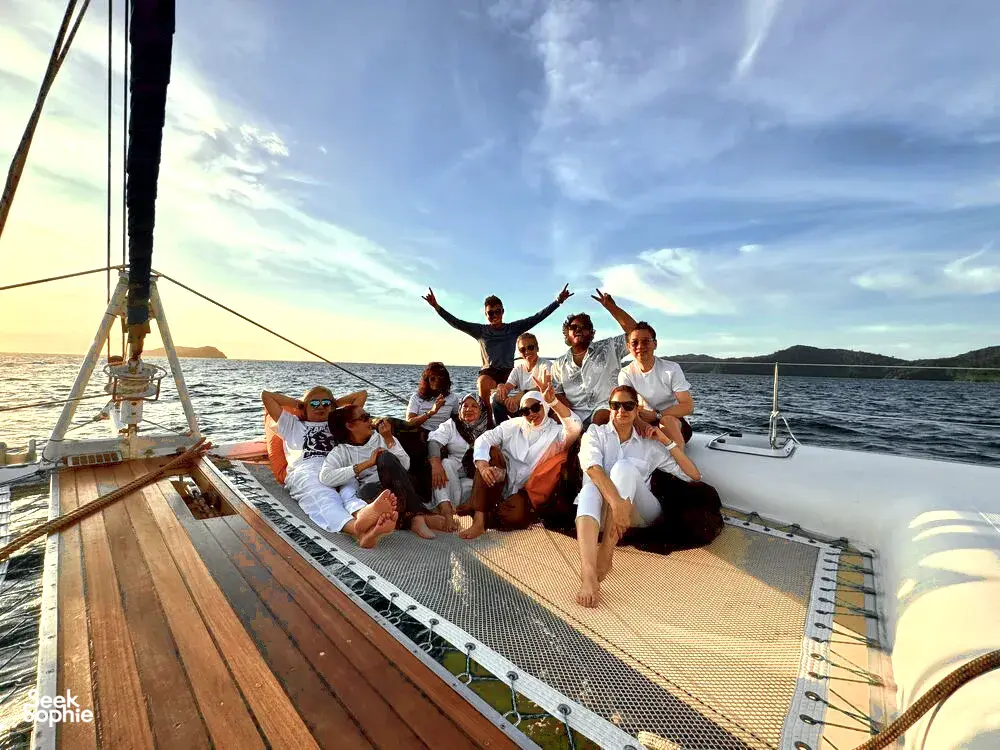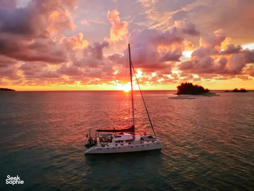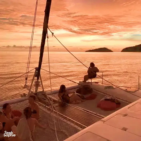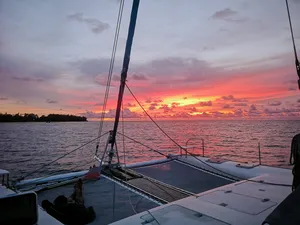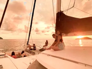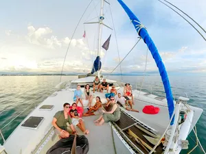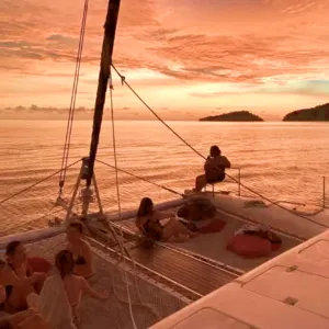 如果你想用特别又放松的方式结束在亚庇的一天,那这趟私人日落游艇行程肯定会让你满意。你将在碧蓝海水中航行,途经东姑阿都拉曼海洋公园的岛屿,浮潜在清澈水域中,并在没有人潮的环境下欣赏绝美黄昏。只有你、你最爱的人,还有一支用心又在地的船员团队,全程贴心照顾。和一般的大型夕阳游轮不同,这趟旅程更私密、更贴近,让人感觉特别自在——非常适合情侣、亲密好友或家庭想要来点专属的放松时光。船员们亲切、风趣,还有很多在地故事可以聊,真的会让你感受到他们想带你玩得尽兴。而且,如果你想加购海上BBQ晚餐(没错,就是在船上烤肉!),整个体验就更完美了。无论你是在庆祝特别日子,还是只是想远离人群好好放松一下,这趟旅程超合适。行程亮点3小时私人游艇巡航,航行于加雅岛或三姐妹岛周边从海上欣赏亚庇最著名的夕阳,全程无拥挤人潮船上提供免费饮料与小点心,轻松享受自选是否在岛附近下水游泳或浮潜海上还能试试站立式划板(SUP)可加购BBQ晚餐,体验更升级(需额外付费)温馨提醒航线会依据天气与风向调整包船时间为3小时(加购BBQ则为4小时)BBQ晚餐需提前预订,若因天气取消,费用不退最多容纳12位宾客 – 超出需额外收费欢迎小孩参加,船上提供救生衣关于游艇登上56英尺私人双体船,享受热带海上假期。这艘由船主亲自运营的游艇,适合情侣、家庭或最多20人的小团体,配有宽敞甲板、全景视野和贴心服务。不管是庆祝重要时刻,或只是想在海上放松一下,专业船员都会照顾好你的舒适与安全。亮点与设备:私人游艇,配有宽敞甲板与遮阳区包含饮用水与小点心提供浮潜装备与站立式划板船上设有淡水冲洗区提供毛巾可加购BBQ晚餐经验丰富又亲切的本地船员,为你量身打造行程