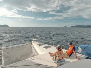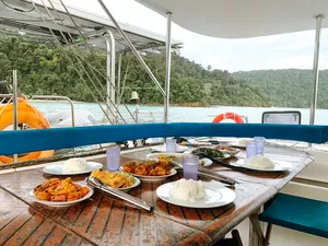 大部分在哥打基纳巴卢的岛屿之旅都涉及乘坐高速船在人满为患的海滩之间跳跃。这个行程不同。你将在Sabah唯一的家庭经营游艇包租中,上午乘船穿越美丽的东姑阿都拉曼海洋公园。这是一个轻松的4小时旅程,你可以在清澈的热带水域浮潜、划桨板,享受海风,看着岛屿缓缓驶过。由于这是一个小团体出行的航行体验,感觉比普通的岛屿游要安静得多。你的船员都是经验丰富的潜水专家,熟悉海洋公园的每个角落,会带你去Triplet Islands或Gaya岛北海岸的绝佳浮潜地点,具体视海况而定。游泳后,在甲板上享用新鲜的午餐,然后放松身心,欣赏海景,船只驶回哥打基纳巴卢。有热情的当地主人和宽敞的双体船,让你感觉像是和朋友一起在海上度过一个早晨,而不是参加一个旅游团。如果你想找一种更平静、更私人的方式探索Sabah的岛屿,这将是其中一个最好的选择。期待体验沿着Triplet Islands或Gaya北湾的风景巡游(视天气而定)在清澈的水域浮潜,欣赏丰富多彩的珊瑚和热带海洋生物由友好且经验丰富、持有PADI证书的船员指导游泳后在船上享用丰盛的午餐有机会划桨板,在甲板上放松,欣赏四周的美景注意事项提供所有浮潜设备、毛巾和午餐 — 只需带上泳衣和防晒霜!行程可能根据海况调整,但船员会确保路线安全有趣这是一个拼团行程关于游艇体验由业主运营的56英尺双体船,享受热带帆船的最佳体验。非常适合情侣、家庭或最多20人的团体,提供宽敞的甲板、全景视野和个性化服务。无论是庆祝特殊日子还是在海上放松,都有一支充满热情、关心你安全和舒适的船员为你服务。亮点及设施:私人大艇,宽敞的甲板和遮阳区提供浮潜设备和立式划水板船上淡水淋浴包含毛巾友好、经验丰富的本地船员,提供个性化定制体验
