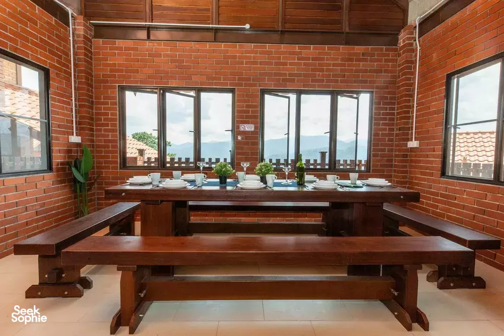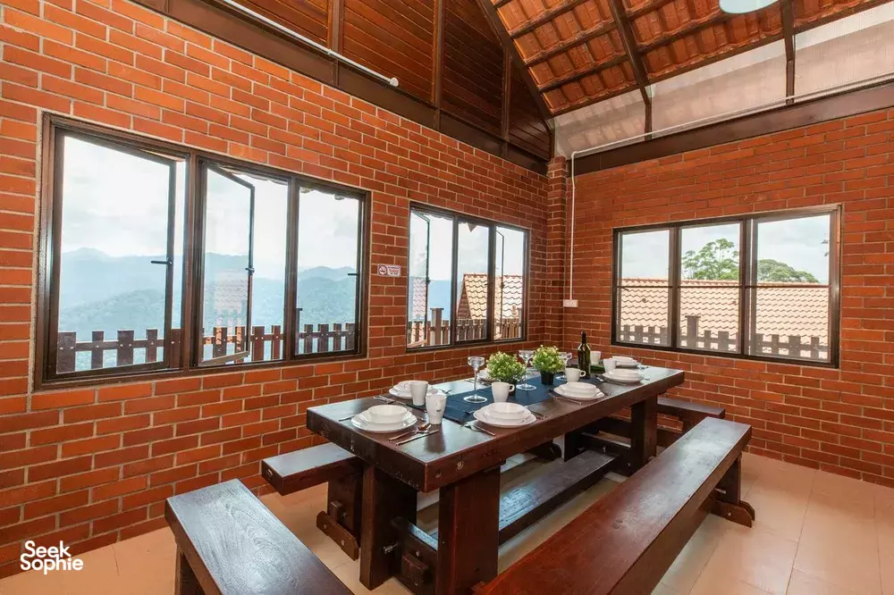 此住宿位于风景如画的Titiwangsa山脉之间,靠近Bukit Tinggi,是一栋私密的花园别墅。RedHouse GardenStay是一栋6卧室砖屋别墅,坐落在郁郁葱葱的山中,视野开阔还能看到云海。一共有9张床(3张特大床,2张大床,2张单人床和1张沙发床),以及6间浴室,非常适合大家庭或朋友团体入住。如有需要,也可以额外提供床垫。室外有修剪整齐的草坪和几个休闲座位区,可以轻松地享受一杯葡萄酒。只要你带上笔电,屋主也很乐意帮你安排星空下的户外电影。住宿期间,你可自由使用花园、有机农场、烧烤区域,以及设备齐全的厨房(包含冰箱和微波炉)。如果你想到周围走走,可以开车15分钟前往Berjaya Hills、兔子公园、Bentong瀑布、Bukit Tinggi高尔夫乡村俱乐部等景点。附近15到25分钟车程内也有不少马来、印度、中式与西式餐厅可选。
