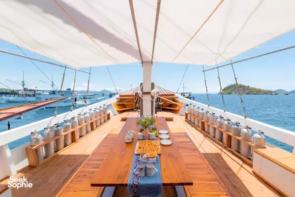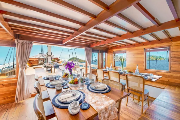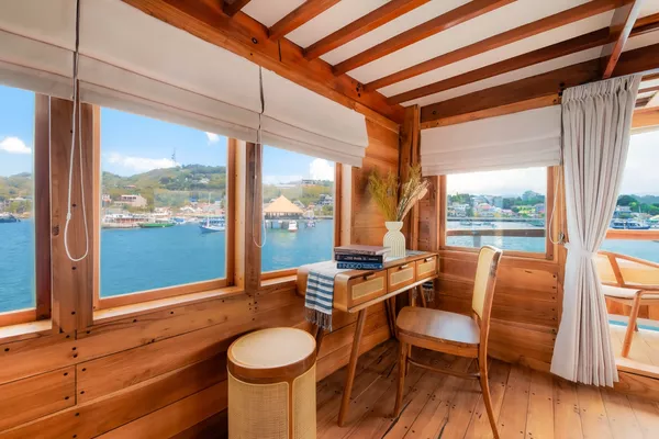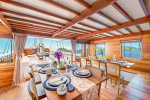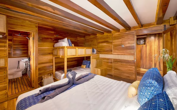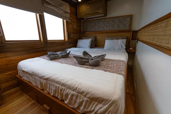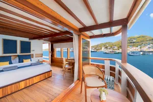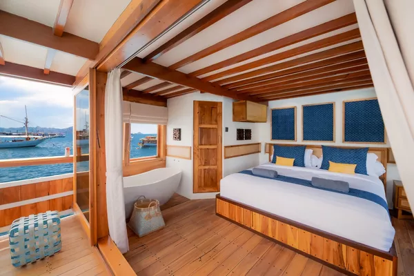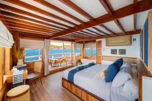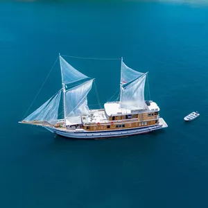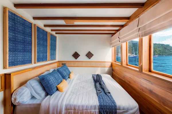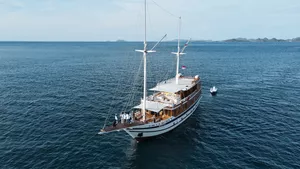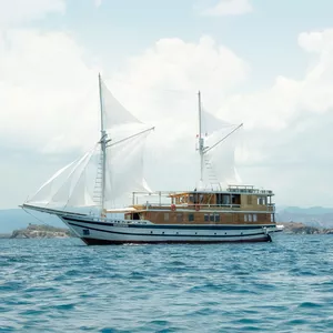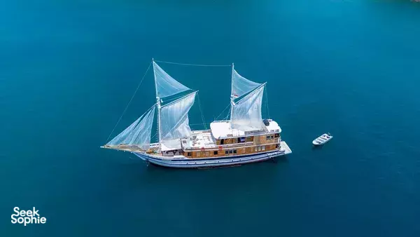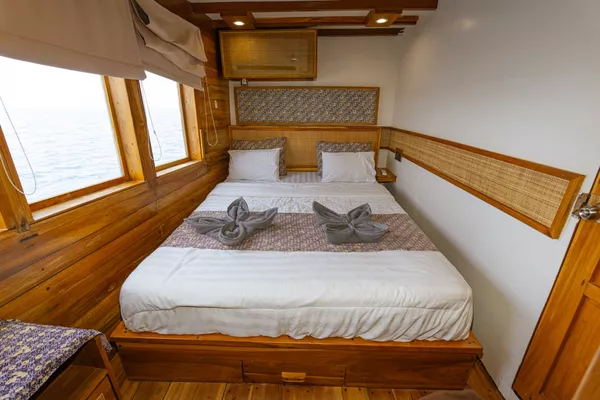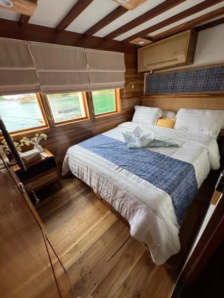 乘坐这艘设计精美的传统帆船,舒适又有型地穿越科莫多国家公园。木质工艺典雅,配有宽敞甲板和海景舱,是想避开人群、慢慢体验印尼最美目的地的完美选择。无论你是在甲板上晒太阳、在户外用餐区吃饭,或是在顶层观星,每个角落都让你的海上旅程更美好。科莫多国家公园拥有惊艳的自然景观和丰富的海洋生态。登上帕达尔岛,近距离看科莫多巨蜥,在粉红沙滩放松;在Siaba岛和Manta Point与海龟和蝠鲼一起浮潜;还可以探访Taka Makasar的沙洲、在Rangko洞穴游泳、在Kanawa和Seraya岛上放空。整趟旅程安排得松弛惬意,让你尽情感受科莫多的魅力。亮点体验探访科莫多最经典的景点:壮观的山景和粉红沙滩在自然环境中近距离观察科莫多巨蜥在清澈海水中浮潜,欣赏海龟、蝠鲼和缤纷珊瑚造访偏远小岛和不为人知的秘境行程可根据你的节奏和喜好灵活调整每天醒来,窗外就是迷人的海景贴心提醒国家公园门票需另付——请联系了解最新费用如需使用无人机,请至少提前7天申请许可,费用为每台每天IDR 2,000,000费用已包含所有餐食、浮潜装备、救生衣,以及从Labuan Bajo的接送服务不包括个人消费、酒精饮料、小费行程可能因天气和海况有所调整船上设施8间时尚海景舱,配有舒适床铺和空调超大日光甲板与顶层观景区,适合晒太阳和看星星开放式公共区域,随处享受海景传统木船结构,融合现代奢华设计浮潜设备与救生衣为每位客人准备高质量旅拍服务,含无人机、GoPro和微单相机船上提供美味餐食,以及矿泉水、咖啡和茶船只参数最多容纳:20人船长:34.4米船宽:6.3米材质:铁木与柚木主引擎:Mitsubishi 8DC11 340马力平均航速:7-10节淡水容量:8000升电力系统:Mitsubishi 4D32 33KVa导航设备:Garmin 585 Plus,AIS Samyung SI-SON舱房介绍套房(上层甲板)– Santalun 1 & 2海景舱,配有特大床、空调、独立卫浴和阳台(限住2人)。豪华舱(主甲板)– Grandis 1 & 2海景舱,配有大床、空调、独立卫浴(限住2人)。家庭舱(下层甲板)– Grandis 3 & 4配有一张大床和上下铺单人床、空调、独立卫浴(限住4人)。高级舱(主甲板)– Cafasa 1 & 2配有一张大床和上下铺单人床、空调、独立卫浴(限住4人)。