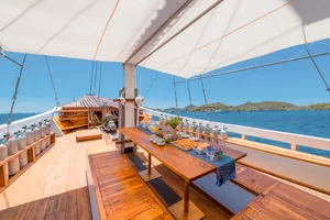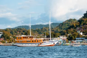 Agung 近十年来一直在帮助旅客探索科莫多国家公园的海域。他的 Phinisi 帆船提供宁静的船宿体验,停泊在避开强流的安静水域。旅客可以期待一支专业的船员队伍、优质的浮潜和潜水装备、立式划水板,以及前往隐秘海滩和当地景点的导览行程。Agung 也注重回馈社会——他培训来自偏远地区如松巴、弗洛勒斯和加里曼丹的导游,机会也包括曾是宗教领袖、教师,甚至是前帮派成员的人。在 Agung 和他的团队带领下,旅客不仅能享受一次井然有序的冒险之旅,也能支持一个通过旅游业不断成长的社区。
