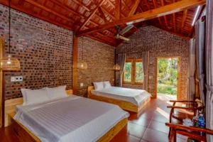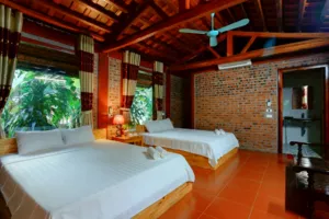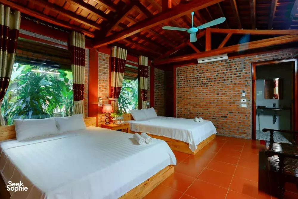 大多数游客来宁平只停留一天或一晚。但如果你想真正感受这个地方的节奏,而不是匆忙赶行程,这个3天2夜的行程绝对值得体验。民宿位于宝顶寺附近(不是热闹的三谷),让你可以在乡间慢慢享受宁静,没有游客喧嚣,也更有当地味道。最大亮点?主人Thanh和他的妻子。他们像家人一样欢迎你,做的是地道家常菜,还会带你去一些游客通常不会去的地方。你会悄悄划船穿过云龙湿地,有机会看到稀有德拉科叶猴和水鸟 — 很可能周围一个游客都没有。你会在夜晚走进灯光映照下的宝顶寺,远离白天的游客潮。你也会骑车穿梭在宁静的田野小路,路过村庙、碧绿稻田,还有热情打招呼的村民。在银河洞的船程中,你会顺着地下河漂流,灯光照亮各式各样的钟乳石,美不胜收。因为时间充足,你可以慢悠悠起床,临时决定绕道走走,也真正获得休息,而不是不停地打卡式旅行。如果你正在寻找一次真实、舒心的假期(还配有舒适小屋和泳池),这就是你平常看不到的宁平。亮点体验云龙湿地静静泛舟 — 留意稀有猴群和水鸟夜游宝顶寺 — 灯光下安静又迷人跟着当地人骑行穿越稻田、古庙和隐秘村庄划船游银河洞 — 灯光点亮奇形怪状的石头景观每天吃主人的家常菜 — 更像是贵客而非游客自由时间充足,可以泡泳池或自己探索村落温馨提示骑行轻松休闲,适合家庭 — 村道平坦记得带防晒霜、防蚊液、和舒服的步行鞋住宿在小村庄 — 手机信号好,但商店不多,建议提前备好必需品饮食限制可提前告知主人安排设施与服务独立舒适的小屋,静谧乡村环境3月至10月开放的泳池,适合外出回来后放松每天新鲜家常菜免费WiFi与公共休闲区提供自行车和摩托车租赁热情细心的本地主人,服务贴心周到
