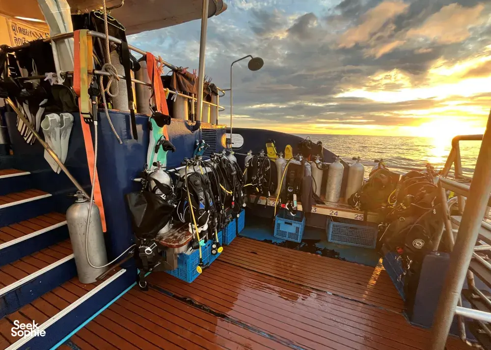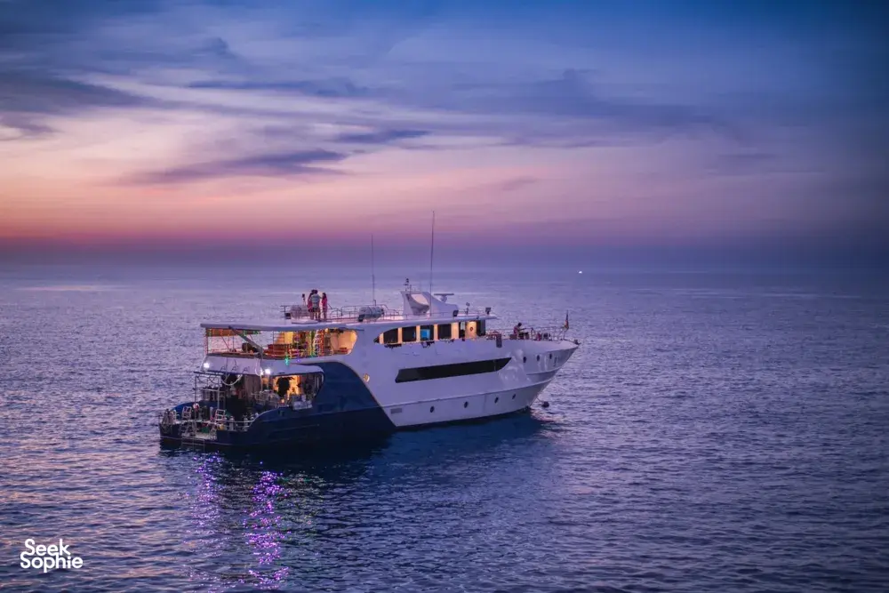 登上一艘感觉更像精品酒店而非传统潜水艇的包船。这艘34米长的优质钢制船只注重舒适与放松,配备套房和空调,确保每次潜水后都能焕发新鲜感。在探索泰国顶级潜水点——包括西米兰群岛、里谢尔岩、布翁顺沉船、邦东岛和塔奇岛之间,你可以在装有85寸电影屏幕的室内空调休息室放松,或在阳光沐浴的甲板上品味冷饮,欣赏无尽的海景。为拥有潜水证的客人提供的个人豪华体验设计,船只控制人数(最多24名客人)并提供1:5的潜水向导比例。这意味着更多指导、更安全的潜水体验和进入鲜为人知的海底热点的内部通道。潜水结束后,享受从点心到寿司到火锅的美味佳肴,服务一流。每一个细节,从客舱舒适度到潜水后勤,都为顺畅、无忧的冒险而精心打造。这不仅仅是一次潜水之旅——它是一场在泰国水下乐园中不断潜水、用餐、放松的精彩体验。穿梭于鱼群之中,探索壮观的岩石地貌,优雅地放松,知道在这艘优质包船上的每一刻都是为您的极致舒适而设计。奢华、冒险、难忘的潜水体验——全部尽在这艘真正的豪华船只的舒适之中。期待体验在西米兰群岛、布翁顺沉船、邦东、塔奇和里谢尔岩等史诗级潜水点进行14次潜水宽敞的空调客舱,配有私人浴室——无需排队洗澡!专业潜水向导(1:5)熟知海底秘境船上享用美味佳肴,从泰式酥脆猪肉到新鲜寿司包含普吉岛酒店到船的接送(纳通、芭东、卡伦、卡塔、拉迈、查龙、普吉镇)在空调休息室或阳光甲板放松船上提供Wi-Fi,保持适度连接(如果你想!)潜水点及海洋生物亮点邦东岛——魔鬼鱼热点:以其清洁站闻名的邦东岛,是观察大洋魔鬼鱼的最佳地点,尤其在2月至4月之间。潜水员还能遇到 leopard sharks、礁鲨、海鳗、章鱼、乌贼以及色彩鲜艳的珊瑚鱼如甜嘴鱼和天马鱼。这里有壮观的峭壁和山脊,覆盖着软珊瑚和海扇。塔奇岛——大型鱼群与浮游生物行动:以强烈的洋流和令人惊叹的水下山峰闻名,塔奇岛让潜水充满刺激,聚集着梭鱼、天马鱼、士兵鱼等大型猎物。季节性还能看到魔鬼鱼和鲸鲨。这里也有裸鳃类动物、虾类,以及环绕巨石的健康软珊瑚群。里谢尔岩——泰国最佳海洋生物多样性:里谢尔岩是泰国最丰富的潜水地点之一,以其丰富的海洋生物多样性著称。预计会看到大规模的鱼群、梭鱼、鲷鱼、天马鱼,以及季节性遇到的鲸鲨。微距爱好者还能发现幽灵灯鱼、海马、哈雷昆虾、青蛙鱼、裸鳃和各种隐匿在软珊瑚、海葵和海扇中的小生物。布翁顺沉船——鱼云与微距天堂:这个浅水沉船充满海洋生物,通常鱼群密集得几乎看不见结构。这里是海鳗、刺鱼、狮子鱼、魔鬼鱼、沙底鳐鱼和各种裸鳃的家园,非常适合摄影和微距爱好者。西米兰群岛:拥有Elephant Head Rock、西伊甸园和圣诞点等多个世界级潜水点。期待色彩丰富的软硬珊瑚、海龟、礁鲨、梭鱼、天马鱼、海鳗,以及各种微距生物,如裸鳃和管鱼。重要须知我们欢迎持有Open Water证书的客人在此行参加。但此路线的潜水点,包括西米兰群岛、里谢尔岩、邦东岛、塔奇岛和布翁顺沉船,深度大约20-30米,洋流适中,非常适合深潜和高阶潜水。为确保您能安全享受所有潜水并加入主要队伍,持Open Water证书的潜水员需在船上完成PADI深潜探险潜水或PADI高级Open Water课程。两种选项都可以在附加项目中选择:PADI深潜探险潜水(有效期1年)PADI高级Open Water潜水员课程如果超过2年未潜水,需先进行复习课程。我们不提供此课程,但会帮您联系当地潜水学校。所有参加者都必须购买潜水保险。如未拥有,可作为附加项购买。每位客人在登记时需填写并签署我们的船只旅行及潜水责任免责声明及风险承担表。表格必须按规定签署,否则可能无法参加,且不提供退款或补偿。潜水装备租赁、潜水电脑、15L气瓶和潜水手电筒不包含在费用内,可提前预订,抵达时以现金支付。国家海洋公园费用为2300泰铢,现场以现金支付。