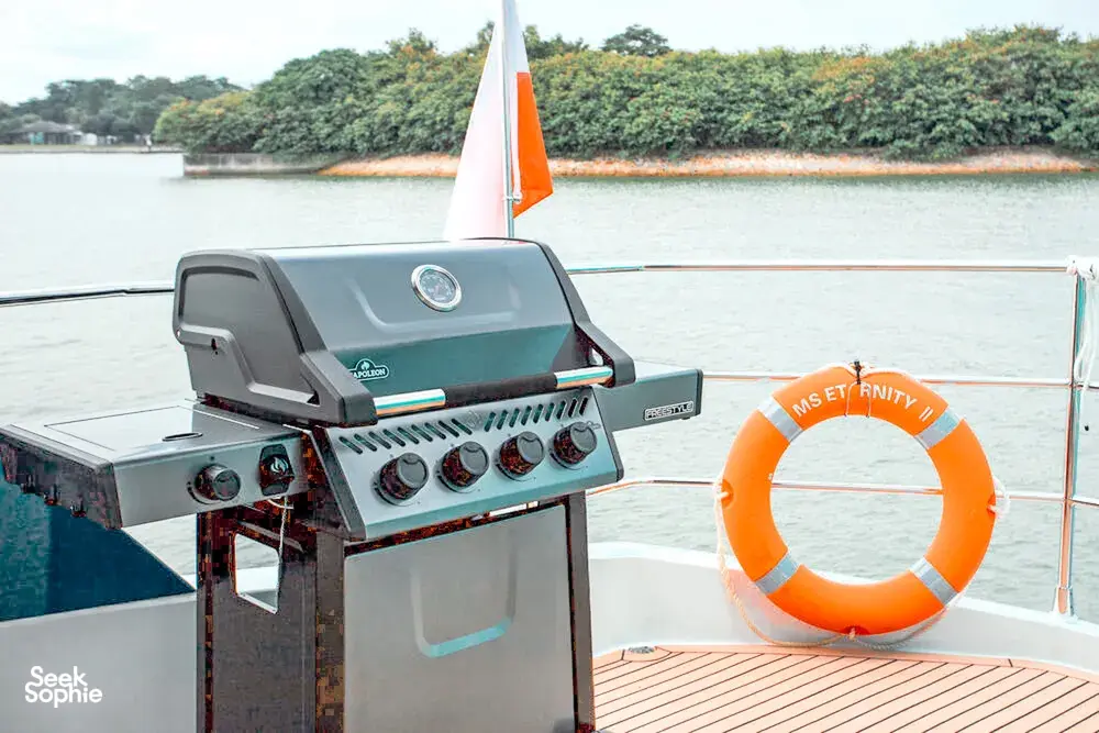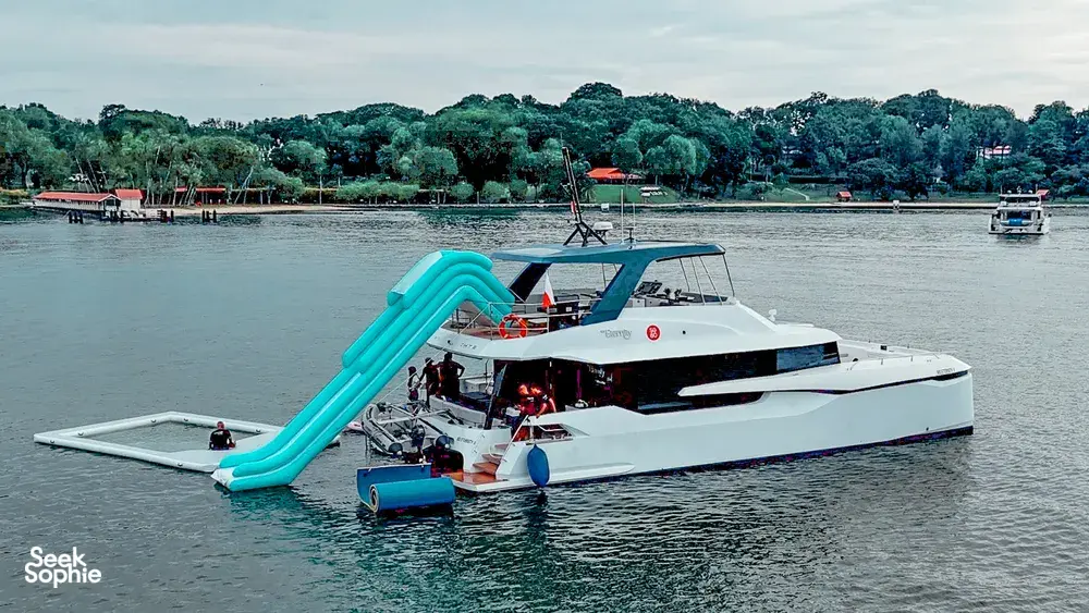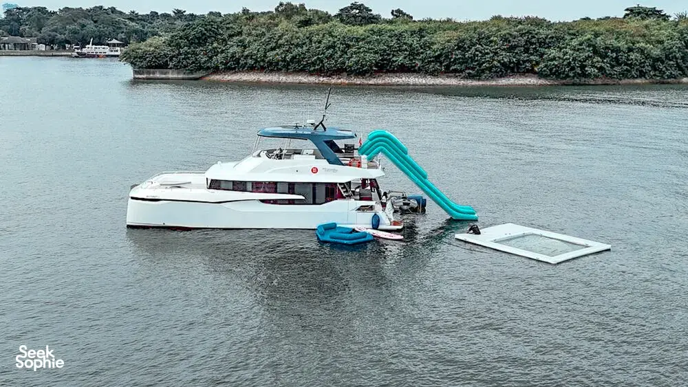 想找一趟不仅照片好看、还能带来超棒体验的私人游艇旅程吗?这艘全新设计(2025年打造)的双体船由团队精心打造,每个空间和功能都为最大化舒适感、流畅体验和整体宾客满意度而量身定制。结果是一艘线条流畅、设计用心、感觉奢华的游艇,非常适合庆祝生日、ROM仪式、团队聚会,或者只是和朋友家人一起在海上放松一天。不同于普通的简单包海,这艘船设定了更高的标准。不仅可以带你游览拉扎鲁斯岛和滨海湾的标志性天际线,还能享受一流的船上款待。想象一下:美味的烧烤已为你准备好,无限畅饮,游泳后等待你的毛巾,星空下的卡拉OK,甚至还有自动麻将桌。船员不仅驾驶船只,还会尽力确保你的体验难忘难忘。无论你是想举办时尚的私人聚会,还是只想和心爱的人在水上享受一整天的轻松时光,这都非常合适。期待您的体验私人包船,配备完整船员——让你尽情放松,其他都由他们照料探索拉扎鲁斯岛的平静水域,配有水垫、划水板和有趣的Sublue水下滑板船上提供烧烤服务,无需自己动手!请自备食物蓝牙音箱,播放你喜欢的歌单100英寸屏幕,用于卡拉OK或电影在滨海湾享受风景巡游,捕捉黄金时段的绝美天际线免费提供矿泉水、软饮、咖啡和茶,让大家都保持水分麻将爱好者——是的,船上还有自动麻将桌,可以在海上玩几轮注意事项标准行程时长为4小时——可以付费延长时间提供喷气滑水艇、浮圈和巨型水滑梯等额外设备。请在“Add-Ons”选择相应选项一次性杯子和餐具不提供,请自行携带游艇最多可容纳35位宾客,适合小型到中型私人活动设施/设备宽敞的双层双体船,内外休息区(带遮蔽!)水上玩具:划水板、水垫、Sublue滑板、浮圈游泳后提供毛巾配备烧烤炉和烹饪服务无限供应软饮和矿泉水蓝牙音响系统配备100英寸屏幕的卡拉OK系统自动麻将桌咖啡机 & 冰块(18公斤)提供葡萄酒、香槟和岩石杯——只需自带香槟即可