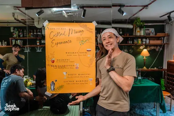 在一个隐秘的自然庇护所举办自己调酒体验 - 一个私人逃离之地,空间、节奏和关注都完全属于你。远离城市喧嚣,这里是庆祝、团队建设或与最爱的朋友们聚会的独特场所,体验与众不同。🍸🥳在这1.5小时的体验中,专业调酒师会介绍你酒吧设备、调酒基础以及制作完美鸡尾酒的方法。你将用不同的调酒技巧调制三款经典鸡尾酒。但真正特别的是,倒酒之前你会走进有机农场,亲手采摘装饰用的材料,从芳香的迷迭香和柠条到热带风味的柑橘和可食用的花卉。背景是郁郁葱葱的自然景色,非常放松地举办一场难忘、有意义又带点惊喜的活动。想在家里或和大群人一起做?主持人也可以带着所有设备和酒水到你指定地点进行课程。请在预订时添加场外交通选项(你可以在预订后提供地址)。期待什么沉浸在自然庇护所的氛围中享受灯光和音乐营造的鸡尾酒工作坊制作三款不同的饮品,学习所有关于酒吧设备和调制技巧(威士忌酸(摇动)、内格罗尼或老式(杯中调制)、荔枝/经典马提尼(搅拌))探索并采摘农场的新鲜装饰材料为儿童友好版,也可以制作无酒精的mocktail。生日派对如果你在庆祝生日,请在预订表的备注栏告诉我们!你的主持人Clarence 和 Candice会赠送你一瓶起泡酒,庆祝你的特别日子。🎁