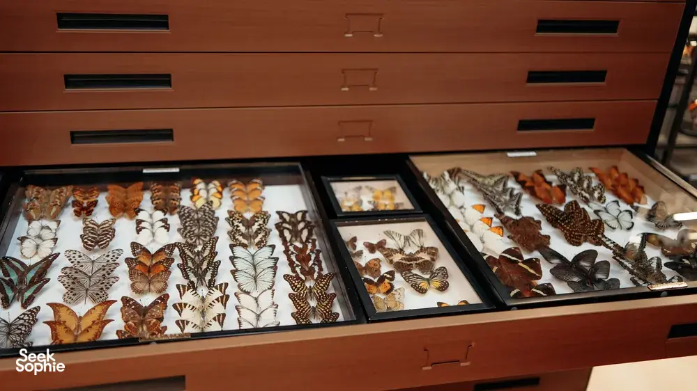 所有标本均来自可靠来源——蝴蝶农场、野生动物中心,甚至是公众捐赠,确保每一件作品都是对大自然之美的道德致敬。
