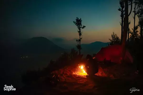 在布罗莫火山的秘密地点露营第 2 天: